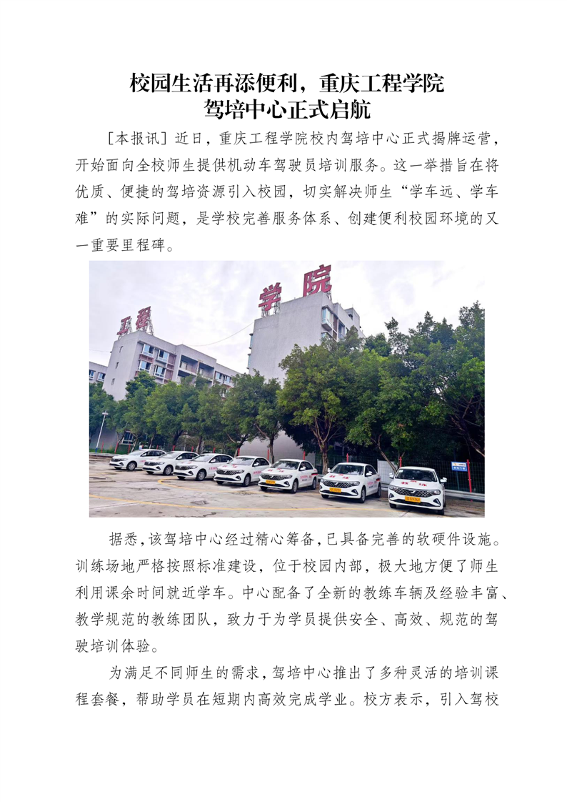 校园生活再添便利,重庆工程学院驾培中心正式启航