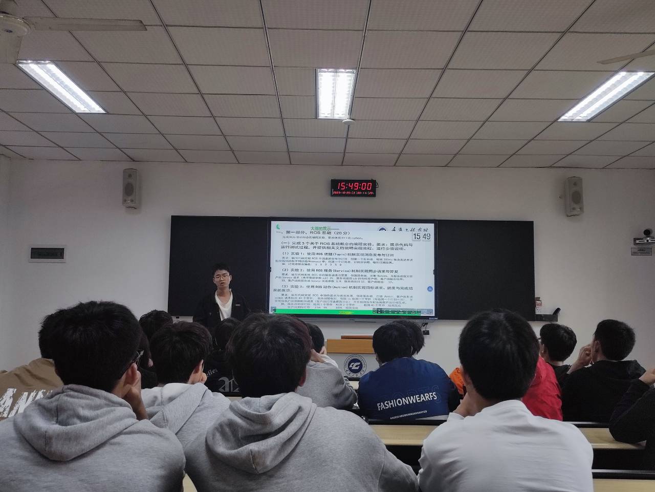 随后,连续参赛两年并取得优异成绩的自动化系赵建刚同学讲述了自己参与比赛的心路历程和经验教训,结合个人的实际情况,分享了一些技巧和策略,特别是大赛的前期准备、选题、分工、时间规划等方面的经验,为刚加入的新同学提供了宝贵的参考。同时,同学们们也交流了自己的看法,提出了问题,并针对性地进行了讨论。