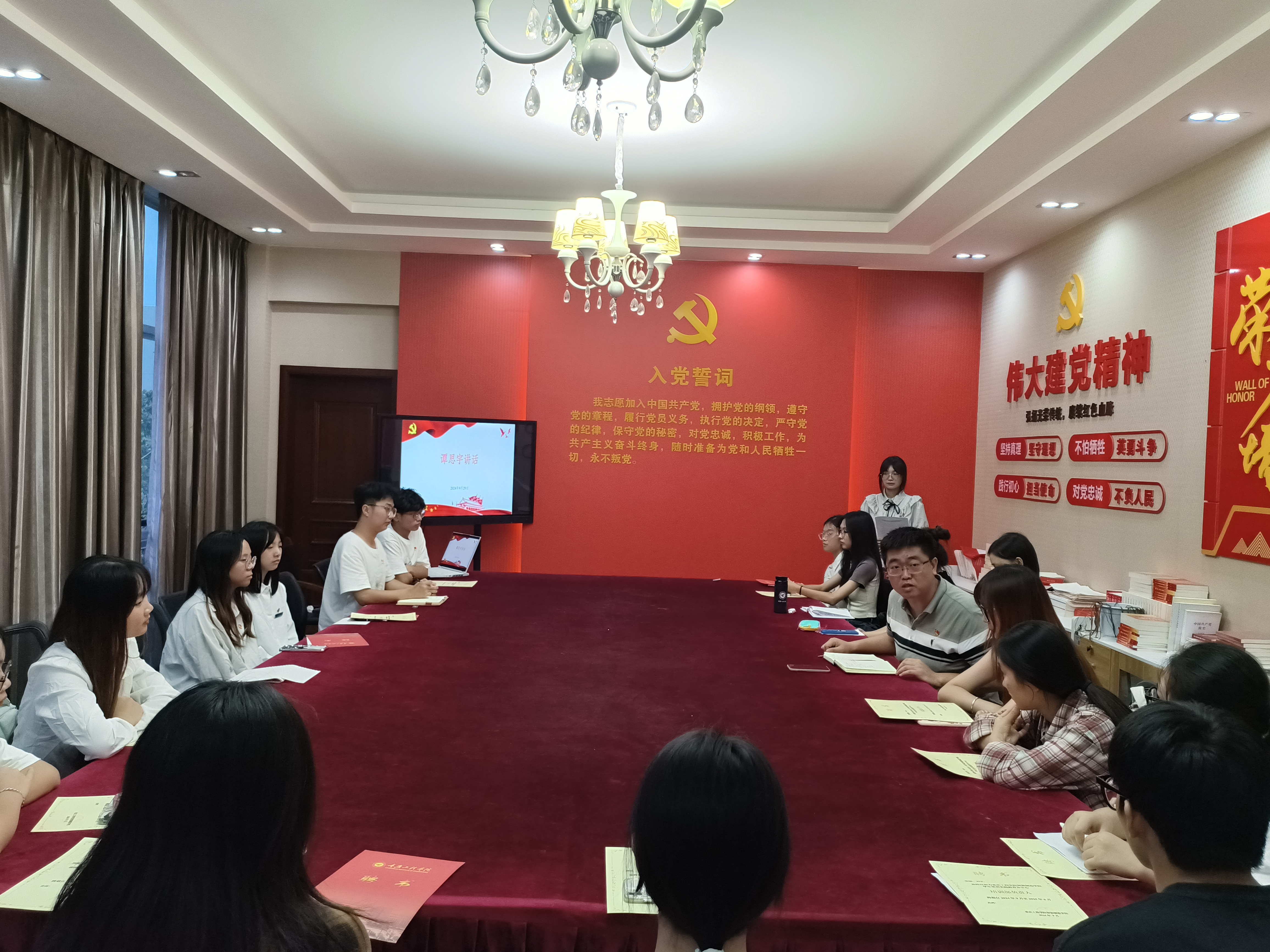 仪式最后,学院党总支书记谭思宇强调,中心成员要加强理论学习,深入学习党的理论知识,提高思想政治觉悟;学生党员要在学习和生活中发挥先锋模范作用,带动周围同学共同进步;中心各部门要在工作方法和流程上进一步优化,提高工作效率和质量,同时也要摆正自身位置,不断学习、不断进步。
