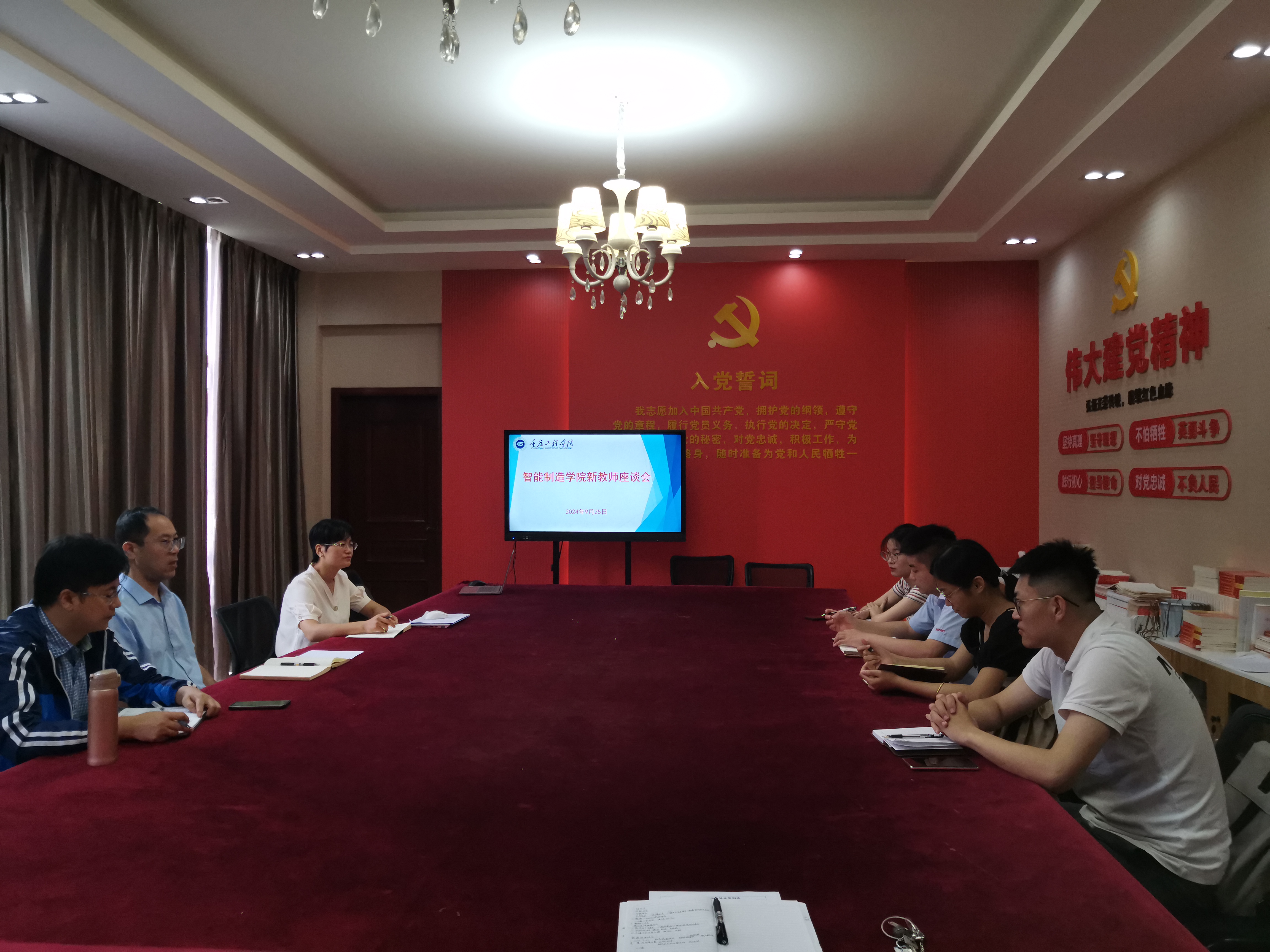 为进一步了解新教师工作生活情况,帮助新教师在新的岗位尽快转变角色,925日下午,智能制造学院在办公楼二楼会议室召开新教师座谈会。会议由学院副院长陈成瑞主持,院长助理胡聪娟、自动化系副主任蒋云国、教学秘书陈白银霜以及全体新教师参加。