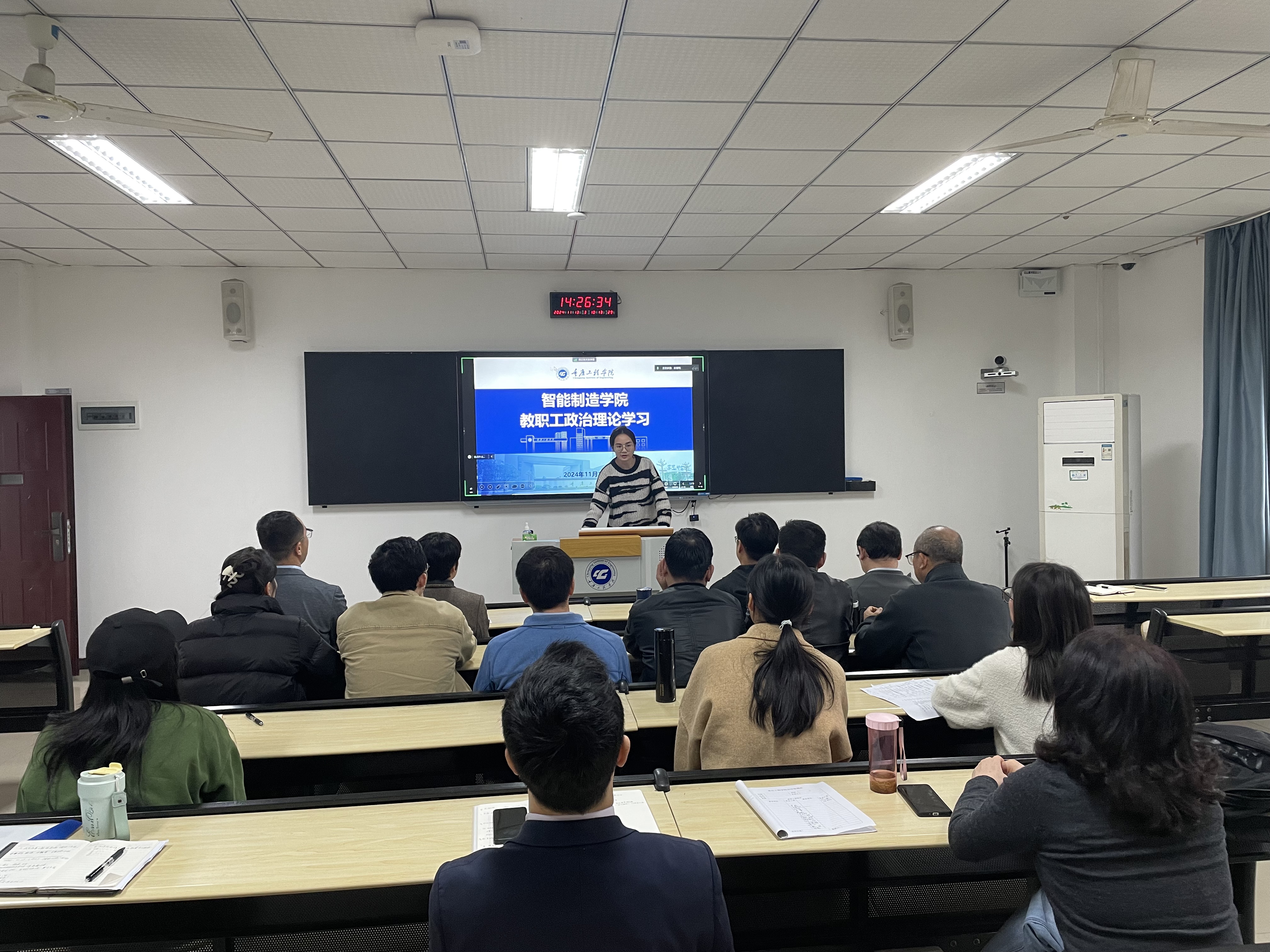 11月13日,智能制造学院党总支在第六教学楼开展教职工集中政治理论学习,学院全体院领导、教职工参会。本次学习由学院组织员刘义莲主持。