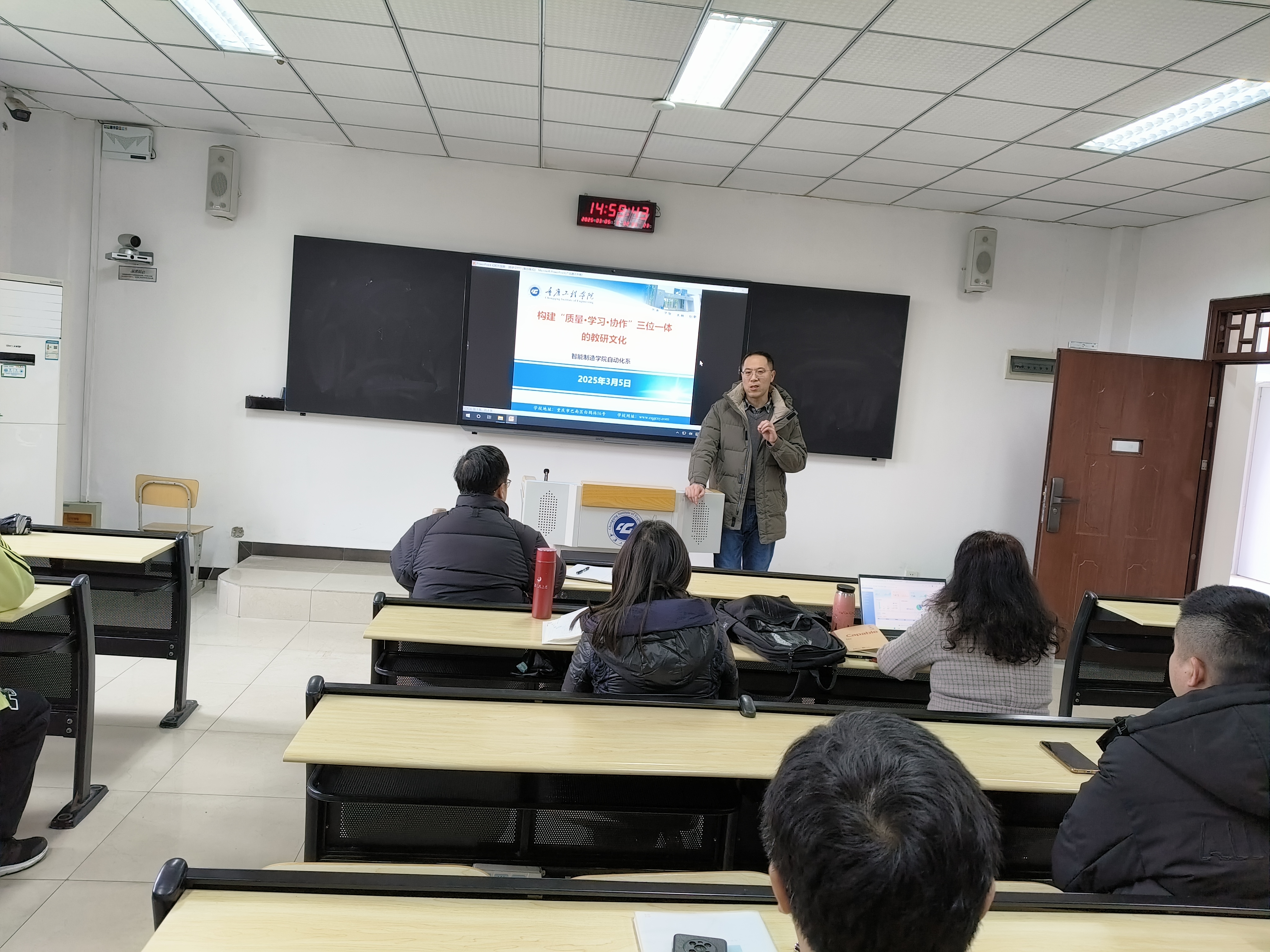 首先,蒋主任介绍了召开本次教研活动的目的和意义,希望全体教师围绕教育教学,积极开展教科研活动,提高教学水平,为系部发展贡献更多力量。随后,陈院长围绕质量、学习、协作主题,结合学院发展建设任务,做了高校教师工作理念的分享,并就有关工作进行了强调要求:一是聚焦质量提升,甩掉常规工作沉重包袱;二是强化学习意识,与时俱进,科技赋能各项工作;三是倡导协作精神,人尽其才,取长补短,共同成长。另外,陈院长强调全体教师要重视就业工作,关注学生就业状态,积极引导正确的就业观,精准帮扶困难学生。