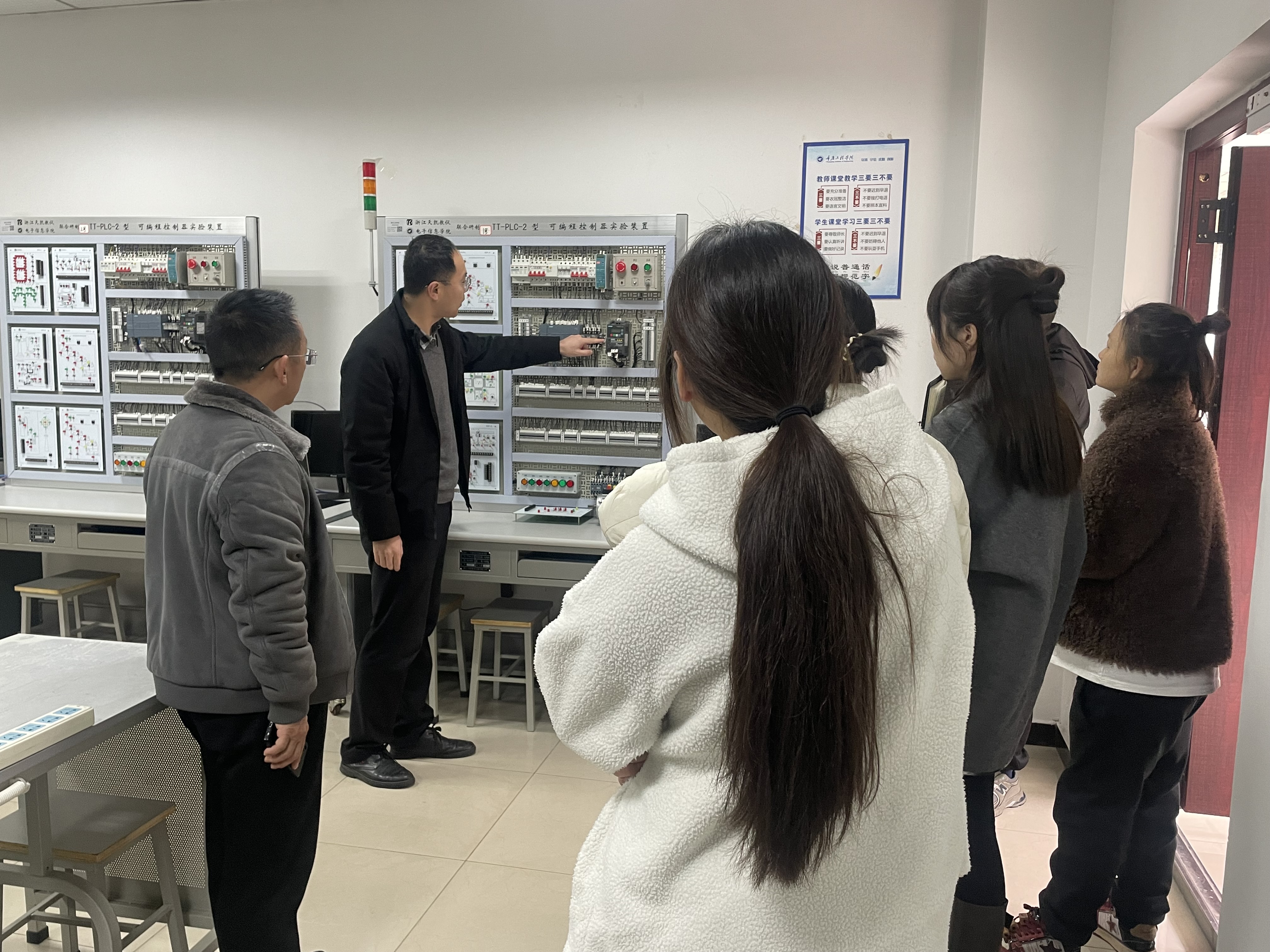 在陈院长的带领下,大家陆续参观了学院7个重点实验室。陈院长主要介绍了工业机器人系统集成与应用实验室、工业自动化与过程控制实验室。这两个实验室主要承担《工业机器人及应用》《工控网络与组态技术》等重点课程,培养学生具备PLC程序编写、工业机器人程序编写等方面能力。陈院长一边详细介绍一边进行现场操作,强调所有教辅人员对质量意识、学习文化的认识不能只停留在概念上,要通过现场感受实验室场景进一步深化对学院各专业的认识,用发展的眼光、学习的心态看待工作,把对学院专业的深刻认知运用到学生的思想教育和指导服务中,丰富育人新内容,为实现育人与教学的融合与促进迈出新步伐。大家专心聆听,进一步了解了学院实践教学条件的建设情况,更为系统地了解了学院本专业领域前沿实验设备,把握了各专业定位方向和核心能力,不但自身收获了新知识,而且明晰了工作服务、人才培养的关键着力点,打开了学生思想教育新路径。