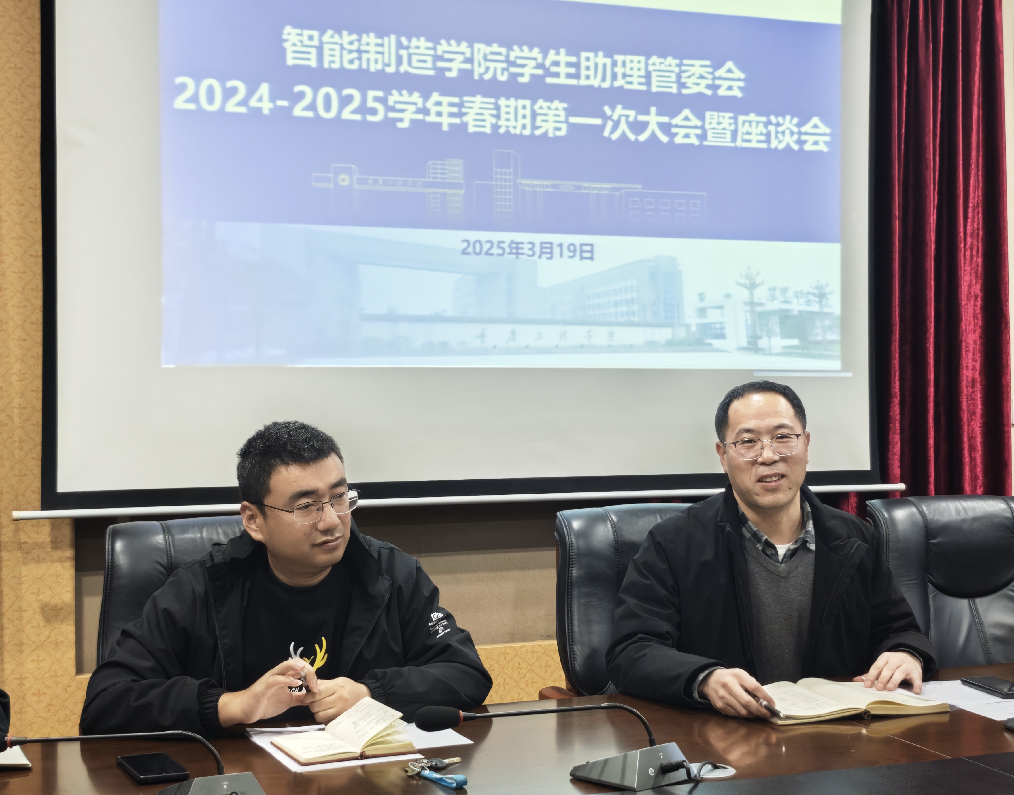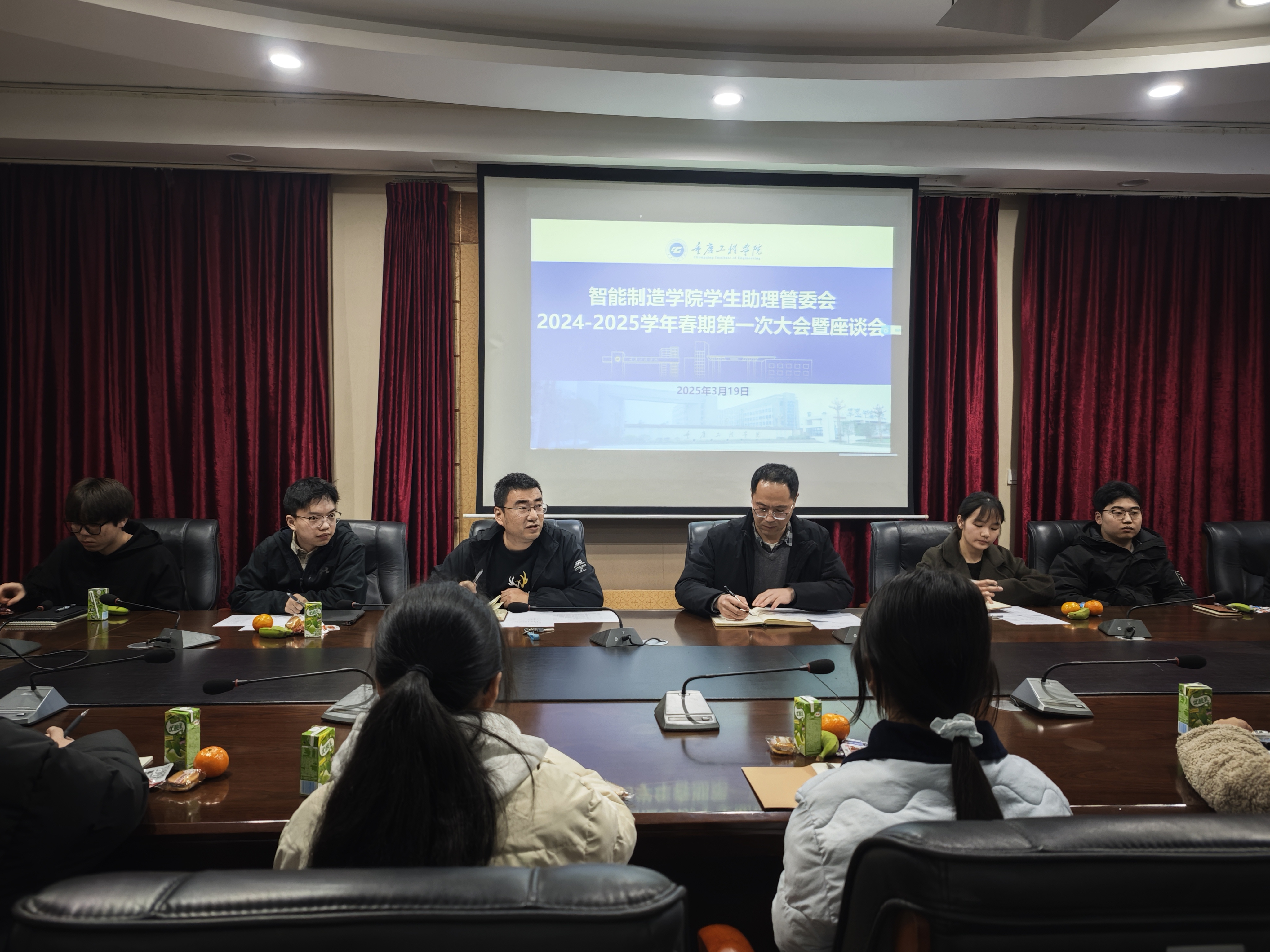 为深化实践育人成效,强化学生助理团队规范化建设,智能制造学院于3月19日19时在办公楼第七会议室召开学生助理管委会本学年第一次全体会议暨座谈会,学院副院长陈成瑞、学工科副科长李剑斌、专职组织员刘义莲参加会议,围绕新学期工作部署、团队文化建设及育人目标实现等核心议题展开深入交流。