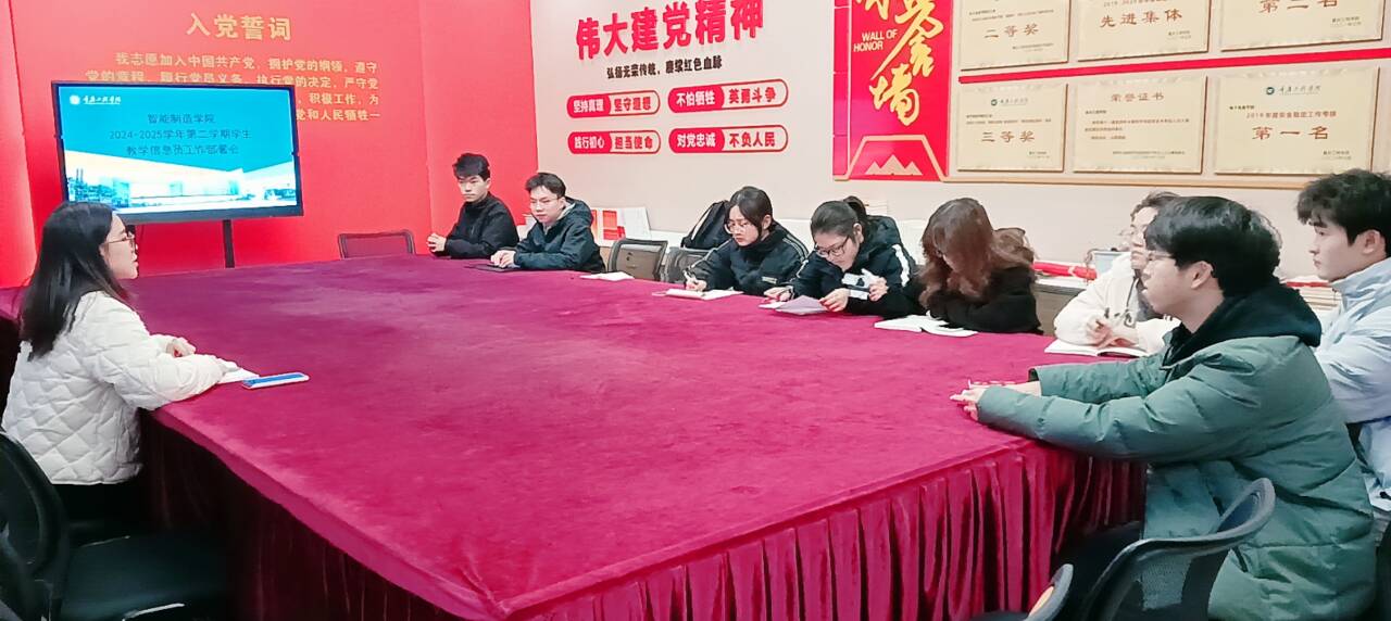 为明确新学期的目标任务,进一步提升信息反馈的质量和效率,智能制造学院于3月17日在办公楼党员活动室召开期初学生信息员工作部署会。出席本次会议的有教学秘书陈白银霜以及2022级、2023级全体学生信息员。