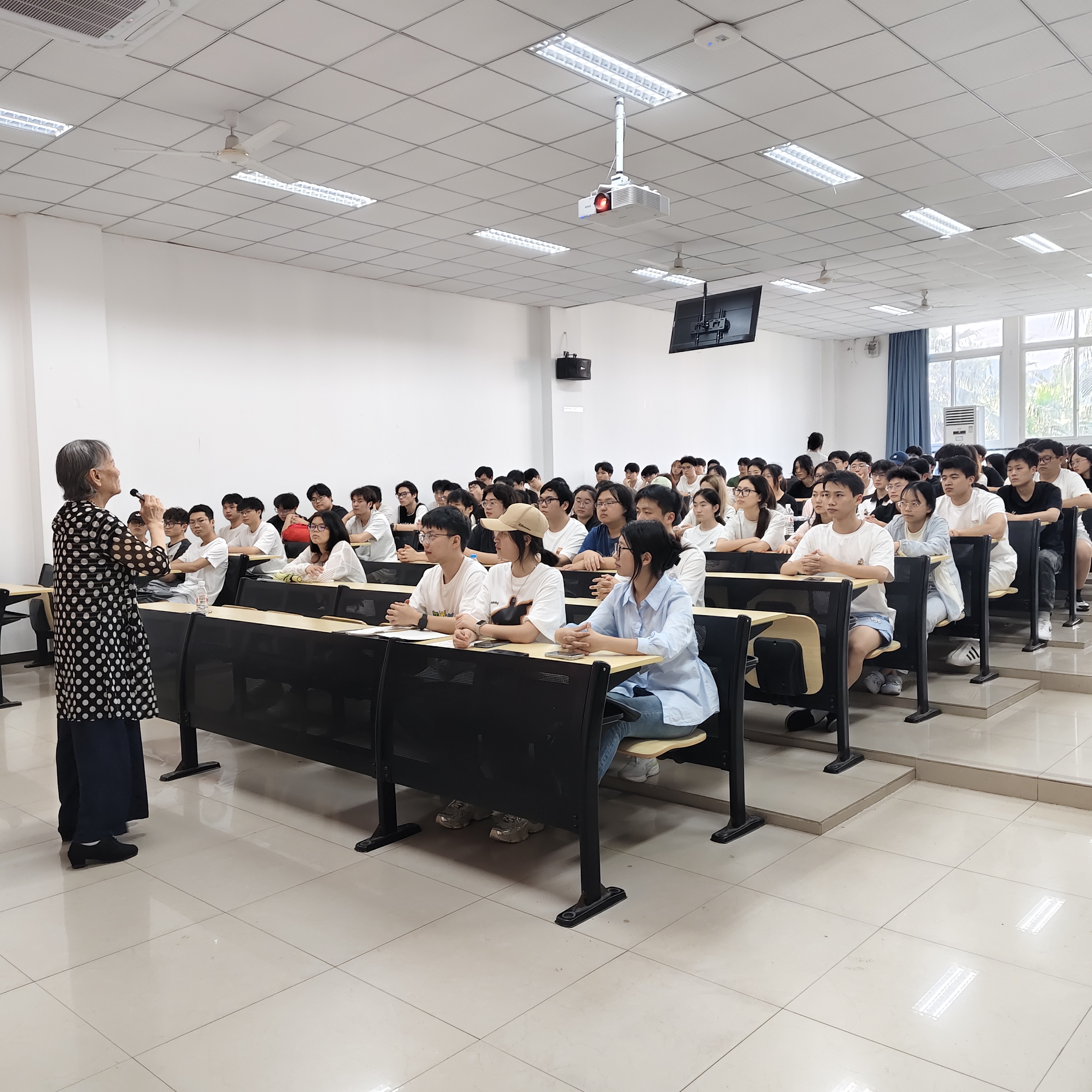 专题班会在四个环节中层层推进。活动伊始,通过红岩短片带领同学们重温革命先辈们的初心与使命,让大家在历史的光影中感悟信仰的力量。观影结束后,箭河社区党建专干周航结合基层工作实际,用鲜活的案例讲述党员在平凡岗位上的担当作为,展现党员精神在基层的生动实践,让同学们切实感受到先锋模范的榜样作用。随后,77岁的退休老党员、原鱼洞街道文化站站长李清容分享红旗渠修建的感人故事。她以"出生在旧社会(1948年)、成长在红旗下,我要传递更多党的声音"的真挚话语,激情诠释"自力更生、艰苦创业、团结协作、无私奉献"的精神内涵,令在场学子深受触动。活动最后,何洋、陈娇等同学畅谈学习感悟,表达践行红色精神的坚定决心。