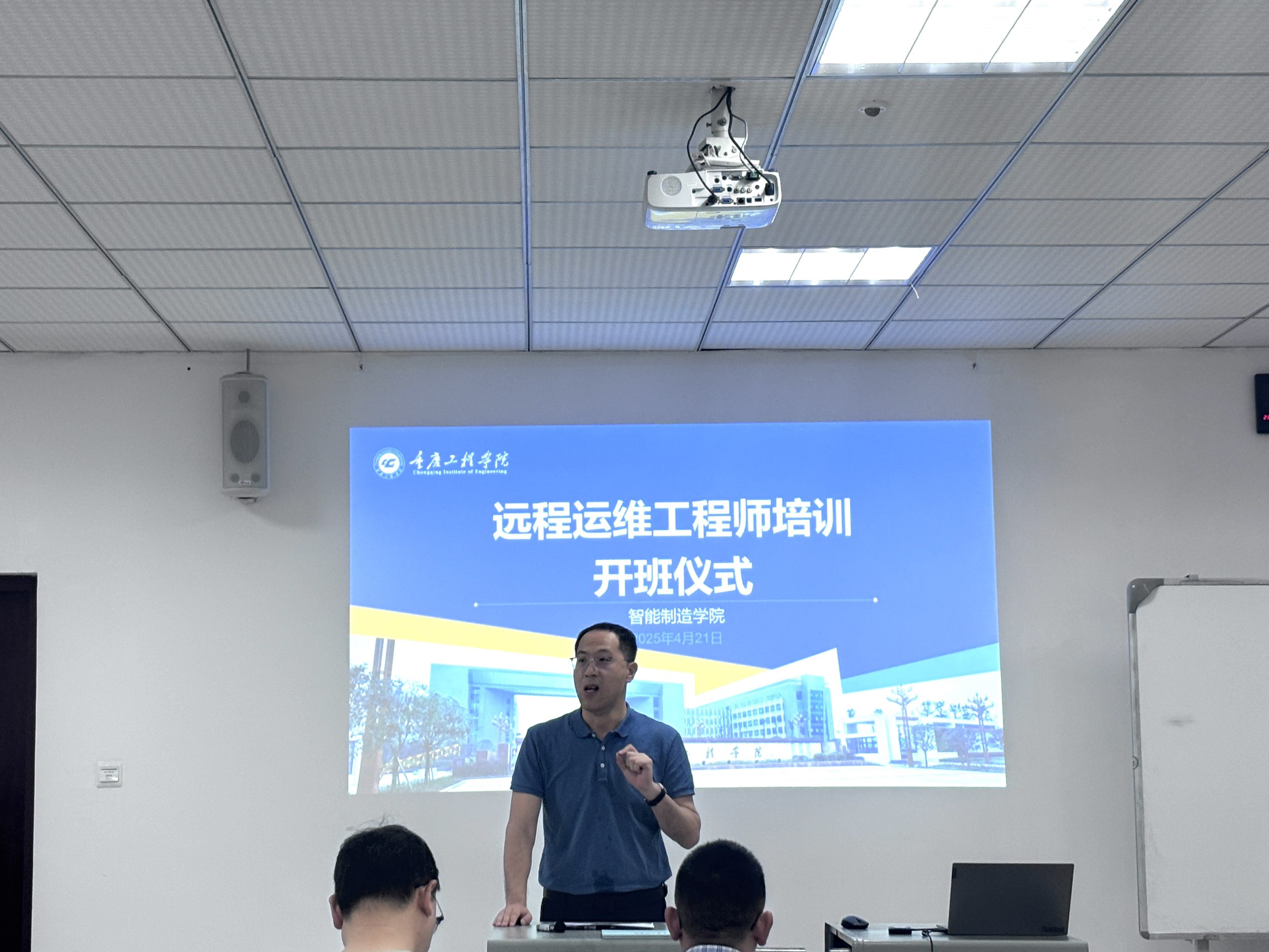 为提高学生工程实践能力,促进学生高质量就业,智能制造学院与广州赛特智能科技有限公司联合开设“服务机器人远程运维工程师”培训班,并于4月21日上午在4教104举行开班仪式。学院副院长陈成瑞、党总支书记刘达斌、自动化系副主任蒋云国、智能制造系副主任李洲荣、学生科科长李剑斌,以及企业代表广州赛特智能科技公司技术支持总监甘泽宇共同出席。该培训班通过校企合作模式,将理论教学与企业实践深度融合,致力于培养符合智能制造领域需求的远程运维技术人才,为学生搭建从校园到职场的精准对接平台。