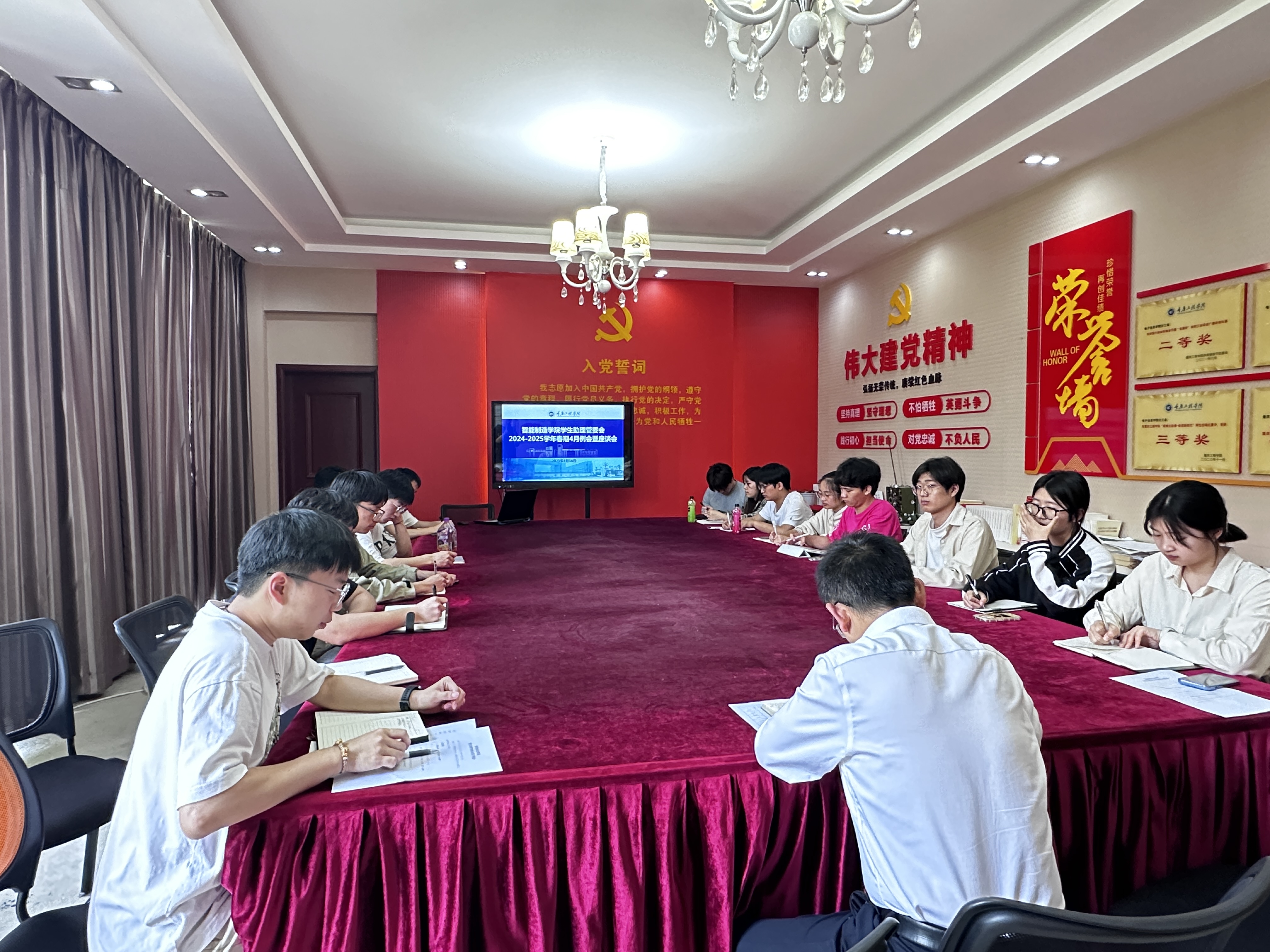 智能制造学院学生助理管委会于4月16日13:10,在办公楼二楼党员活动室召开4月例会以及座谈会,学院党总支书记刘达斌老师参会。