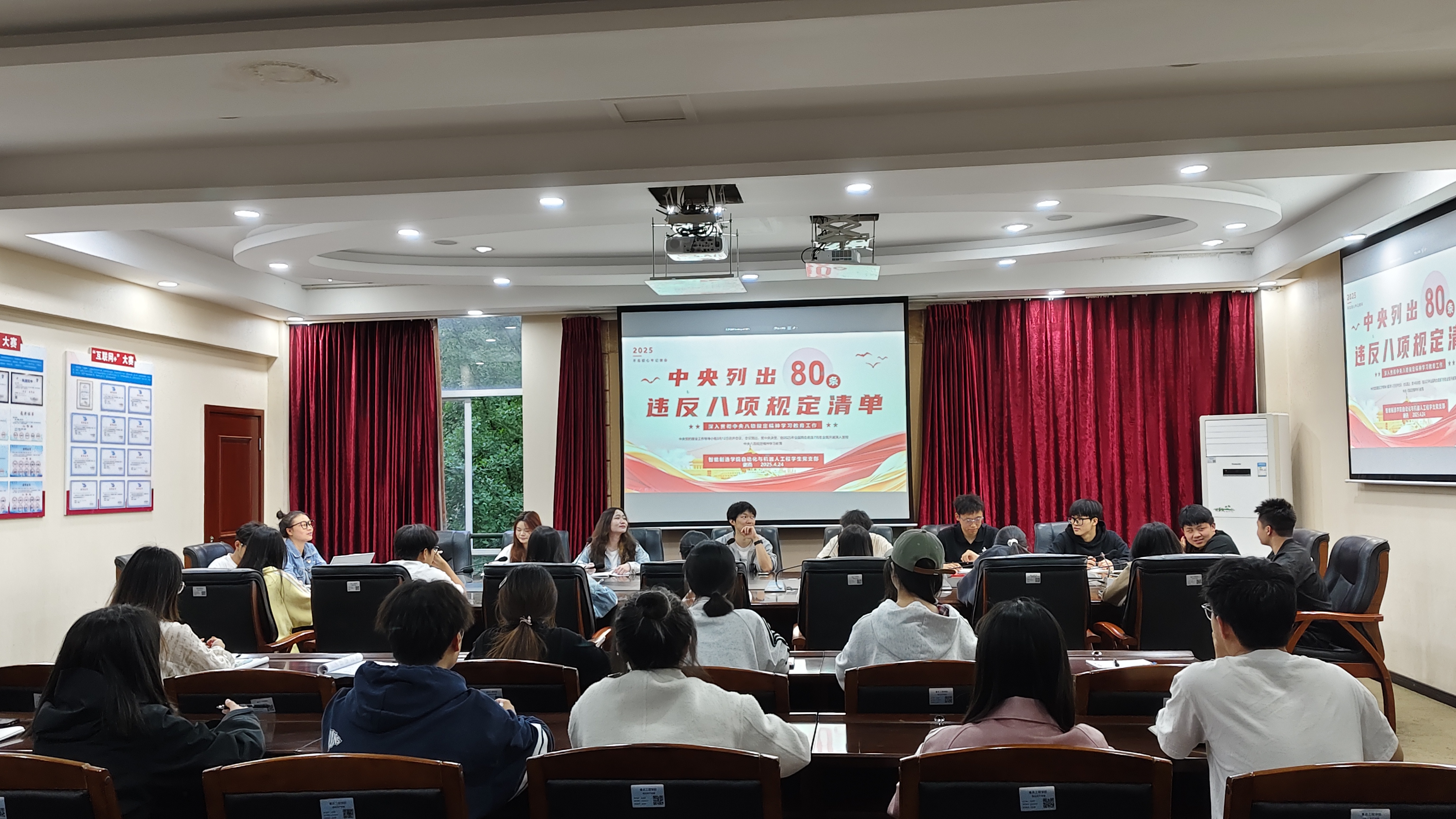 为强化学生党员的纪律意识与廉洁观念,推动党风廉政建设在青年党员群体中扎根。424日,智能制造学院自动化与机器人工程学生党支部办公楼212会议室开展以深悟八项规定精神,严守纪律作风红线”为主题的党课学习活动。此次党课由支部书记谢燕主讲,支部全体党员同志及发展对象参与。