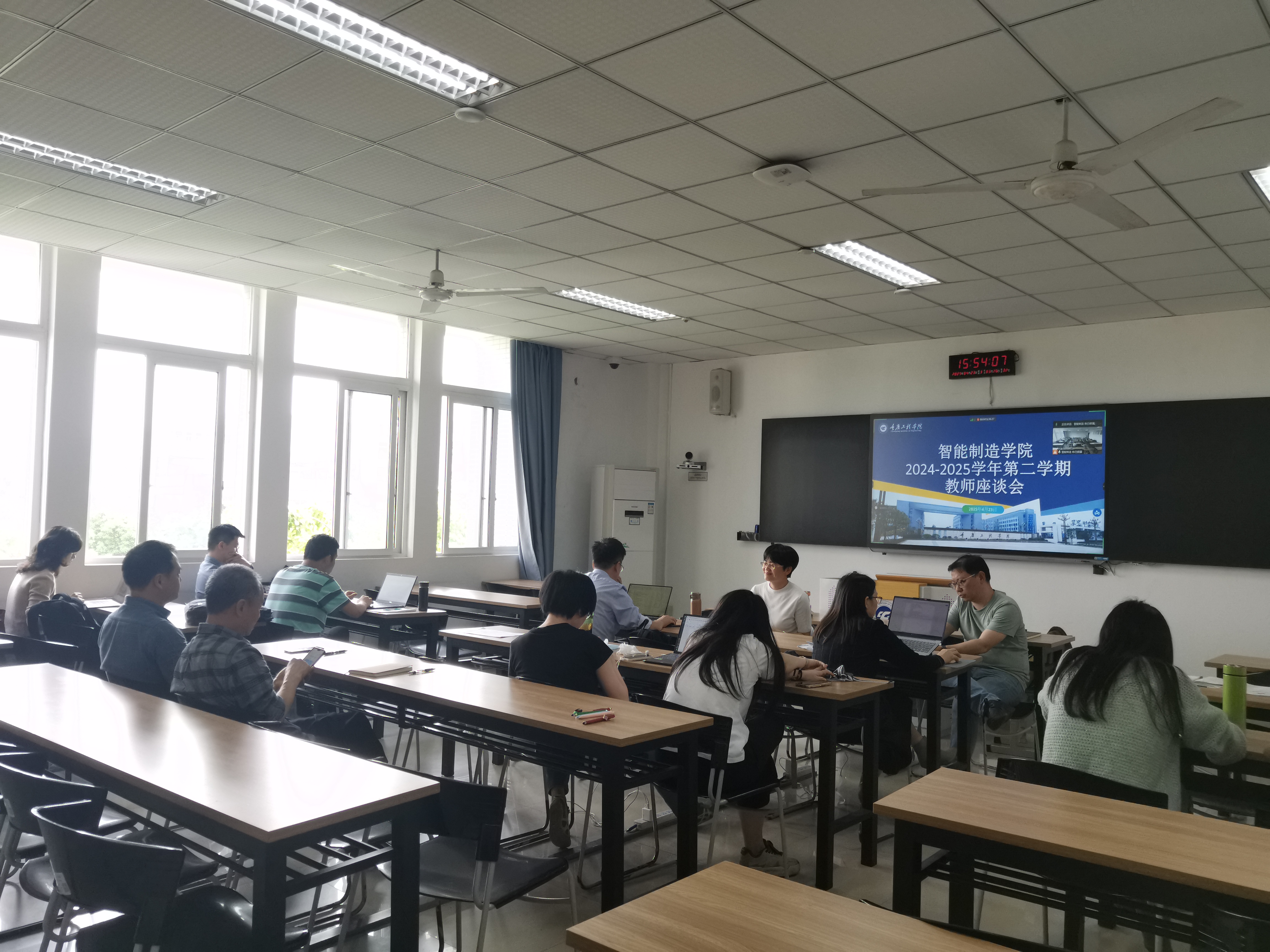 为了促进学院教学质量的提升、加强教师间的交流与合作,2025年4月23日下午 15:30,智能制造学院在第六教学楼6418组织召开了2024-2025-2学期期中教师座谈会,会议由院长助理胡聪娟主持,副院长陈成瑞、自动化主任蒋云国、智能制造主任李洲荣、教学秘书陈白银霜以及教师代表参加。