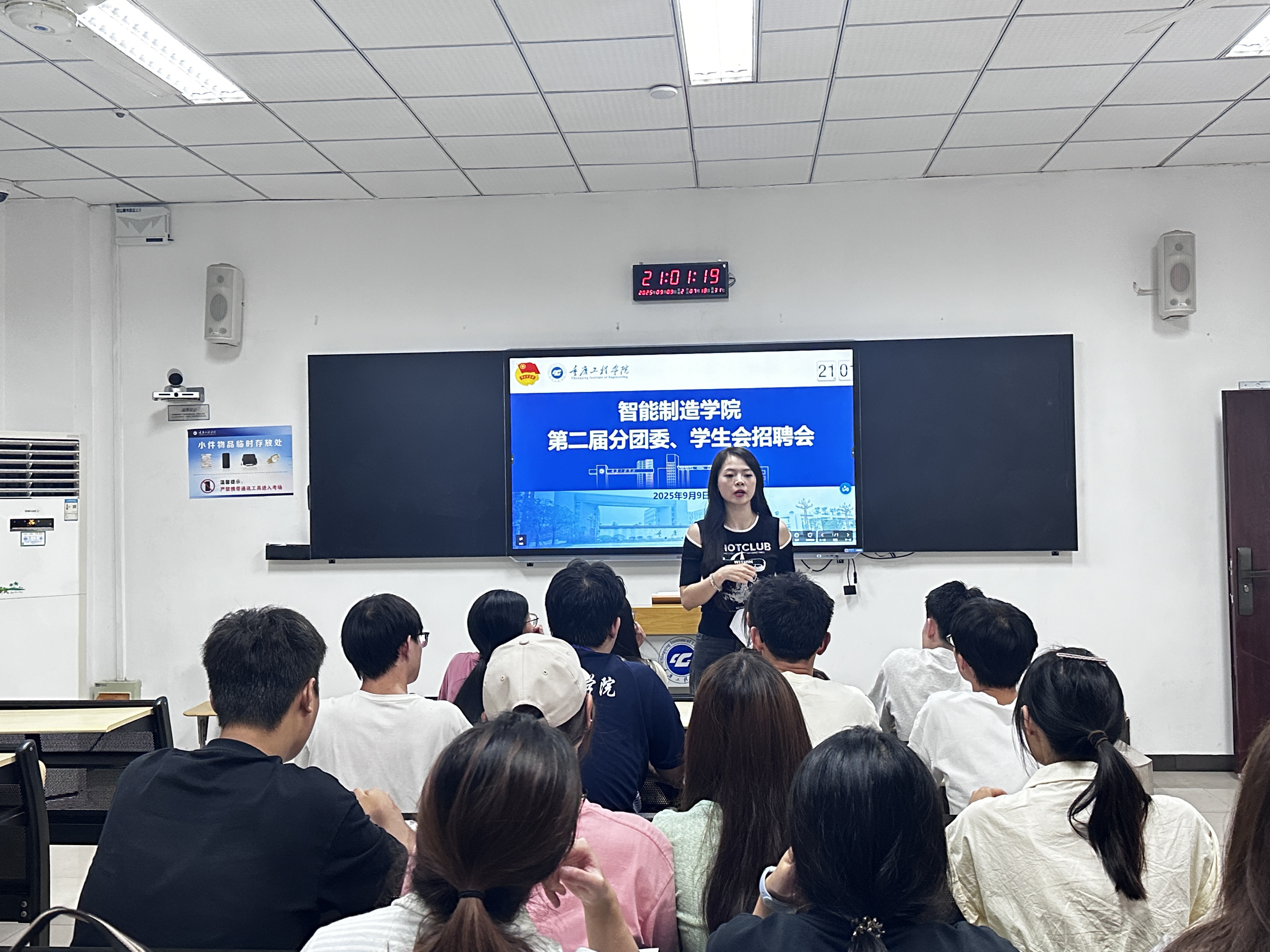 为充实学生组织力量,搭建青年学生成长实践平台,“青春逐梦・竞展芳华——第二届分团委学生会干部招聘进行时”主题招聘活动于2025年9月9日20:00,在学校6121教室正式拉开帷幕。学院分团委书记李小凤老师莅临指导,分团委、学生会各部门负责人组成评审团,应聘同学怀揣热情到场,青春活力满满。