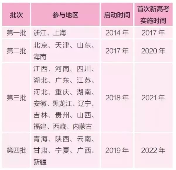 (注意:新高考实施时间是指高考的时间)