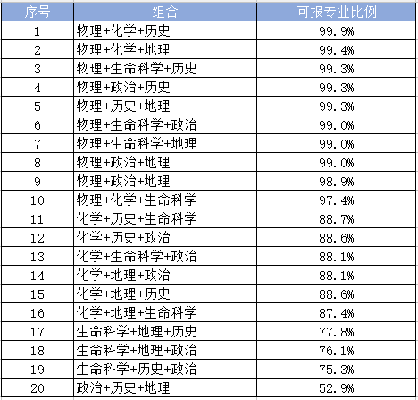 传统的三门纯文科组合。这个组合的最大缺点就是专业选择严重受限!因为不少高校专业和学院的要求是必须要搭一门理科,所以一门理科都不搭的纯文科组合在专业上就受到很大限制。