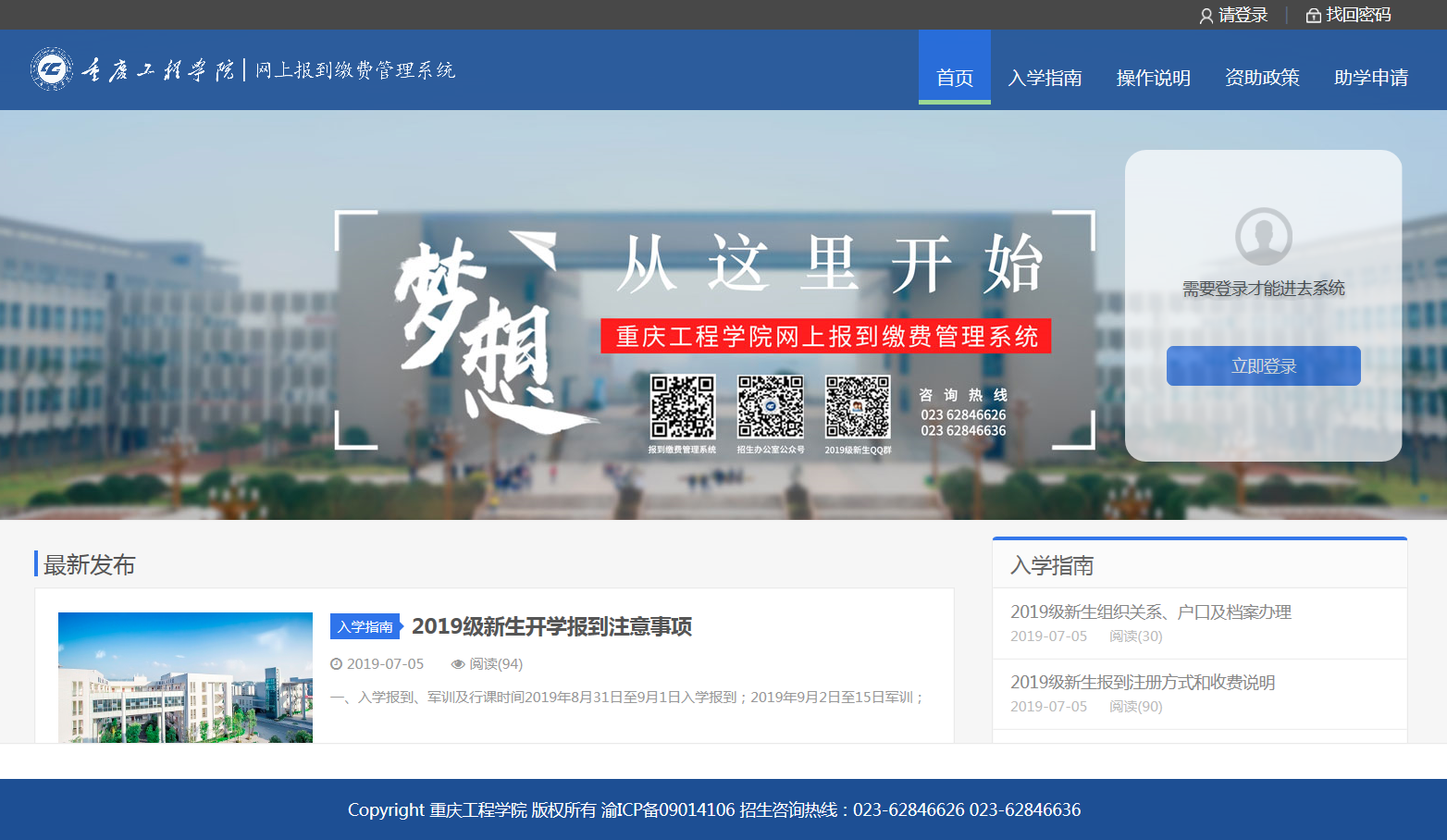 重庆工程学院报到缴费管理系统是学校专门为方便新生顺利完成学籍注册、报到缴费、寝室床位选择以及顺利来校报到而开设的网上平台,新生可通过网上报到缴费管理系统安全便捷的完成开学报到缴费相关事宜,系统具体使用方法如下说明: