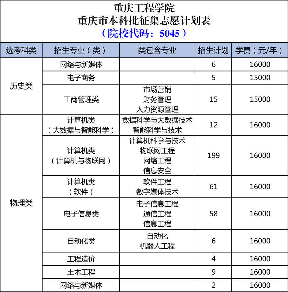 备注:招生代码和最终招生计划以重庆市教育考试院公布为准。