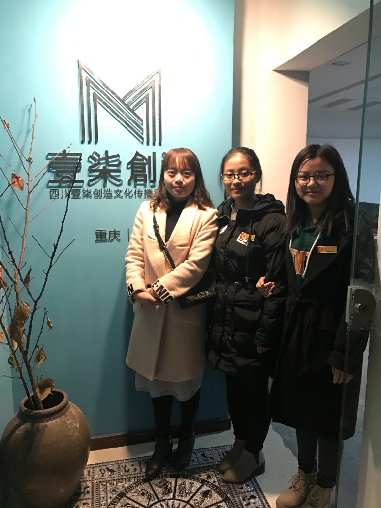 本网讯(动画与数字影视学院 周静)为深入了解毕业班学生实习状况,实地调研用人单位对实习生的满意度,以及更确切了解用人单位的需求,2017年12月16日,动画与数字影视学院辅导员周静老师拜访了四川壹柒创造文化传播有限公司和重庆俄尔斯文化传媒有限公司两家毕业实习单位。