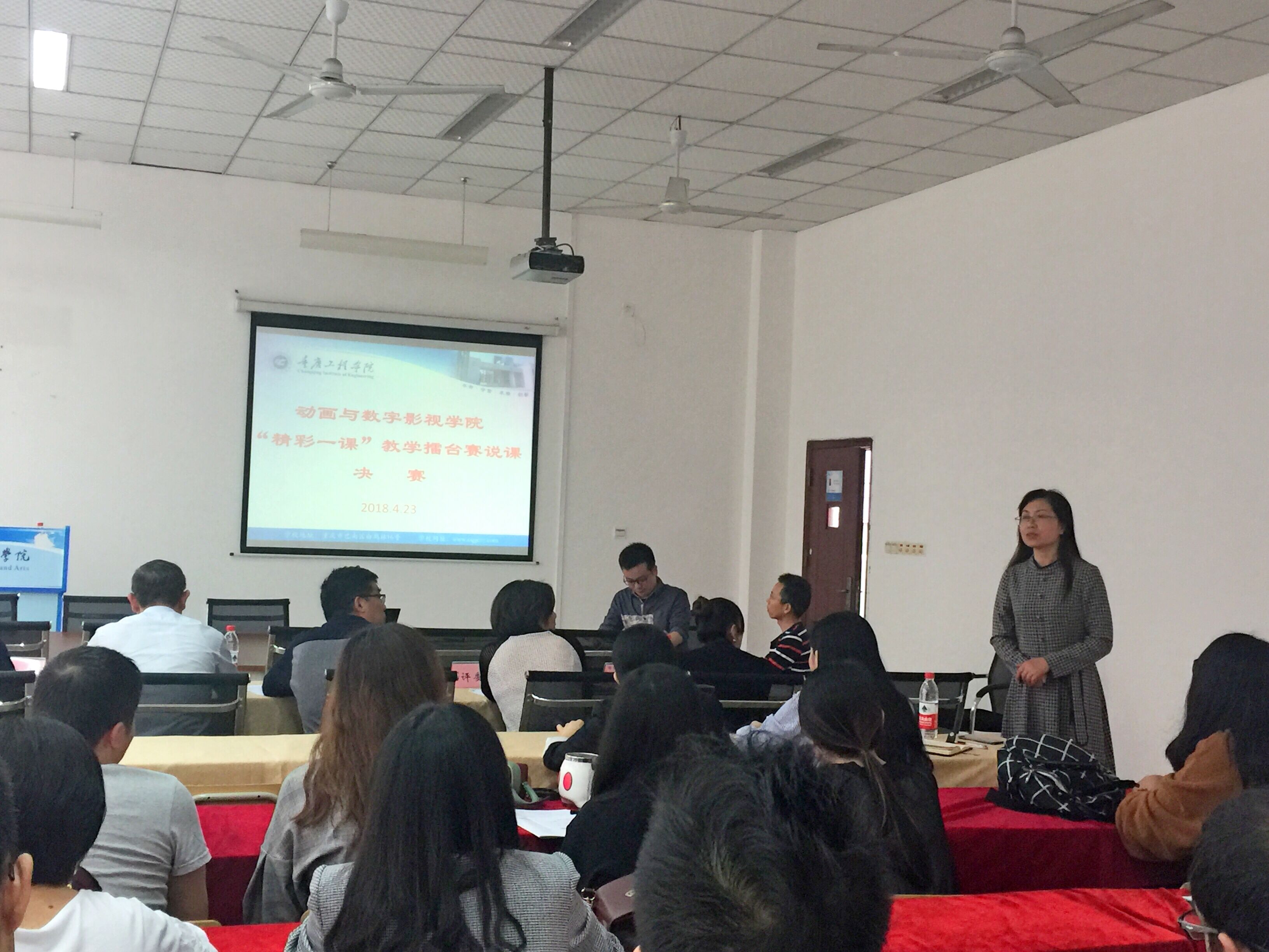 本网讯(图/文 胡秋琼)为了加强应用型本科高校的内涵建设,提高人才培养质量,促进教师教育教学水平不断提升,动画学院于2018年4月23日13:00在5207会议室举行“精彩一课”教师技能擂台赛说课赛学院决赛。