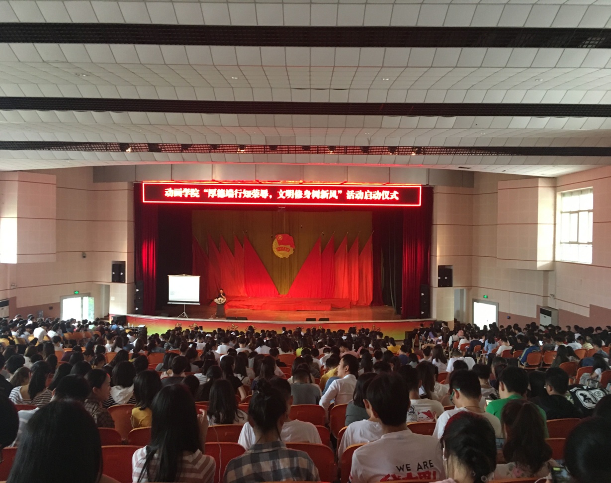 会上,徐书记宣读校“第三届文明修身节”活动方案,积极动员师生参与到活动中来,呼吁举行“文明修身”一系列特色活动。同时宣布动画学院“寝室文化艺术节”活动启动,引导全体学生养成良好的生活习惯、学习风气,以丰富多彩的主题系列活动为载体,锻炼同学们的动手能力和协作能力,达到提高大学生综合素质的目的。