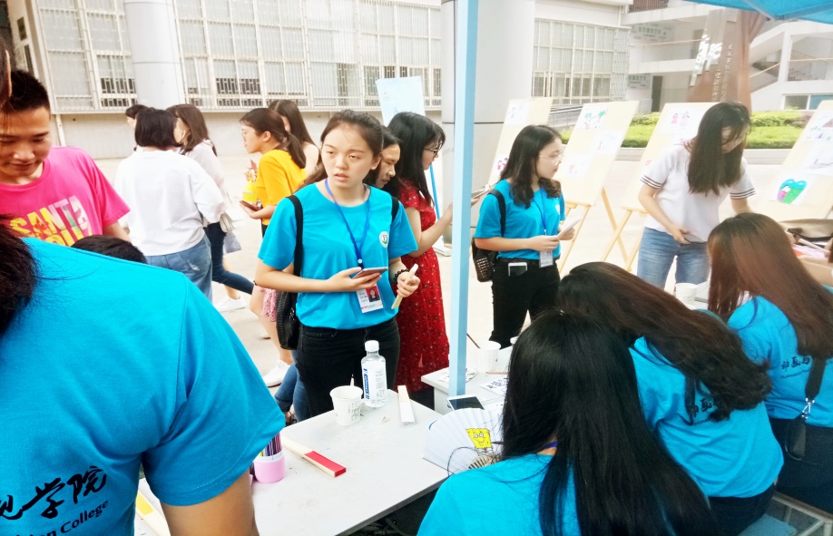 天气作美,阳光正好。志愿者们来到动画学院教学楼举行了一系列互动。主要内容有:第一,“三行情书”网络报名,写下对母亲或者老师的感恩;第二,绘画感恩扇子,展示专业的绘画能力;第三,赠送扇子给女老师,表达对母亲节的问候;第四,展出四点半课堂最美妈妈绘画活动的作品。前来参观和参与活动的同学也是络绎不绝热情满满。志愿者们热情的讲解活动要求和细节,也怀着感恩之情把扇子送给了老师和社区的母亲们。对于感恩每个人都没有丝毫怠懈。