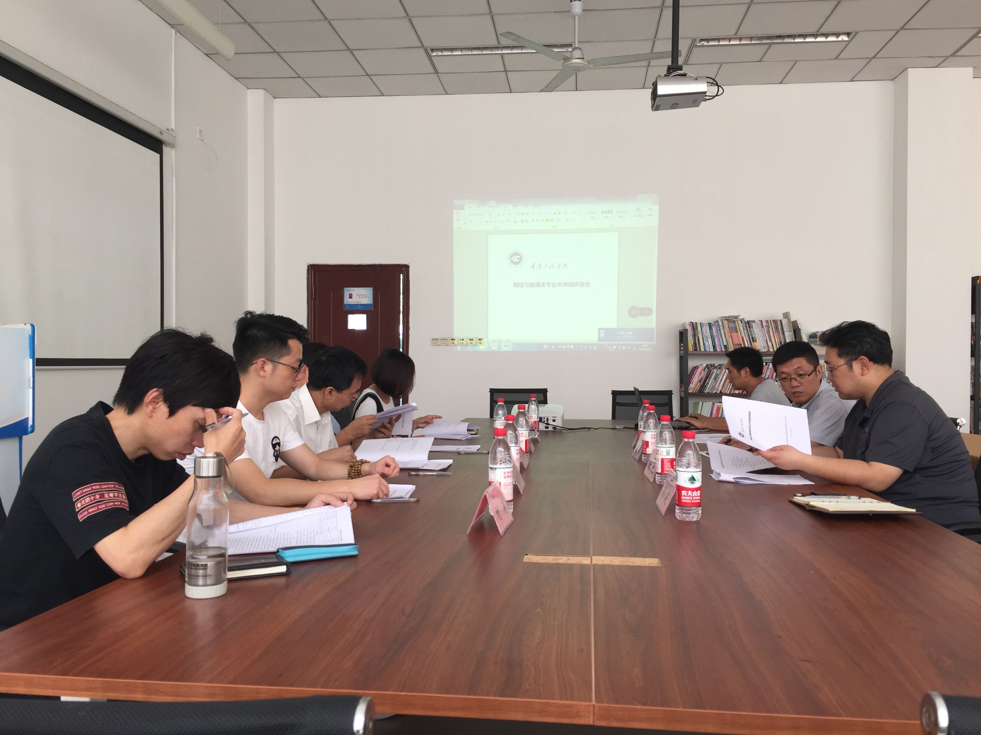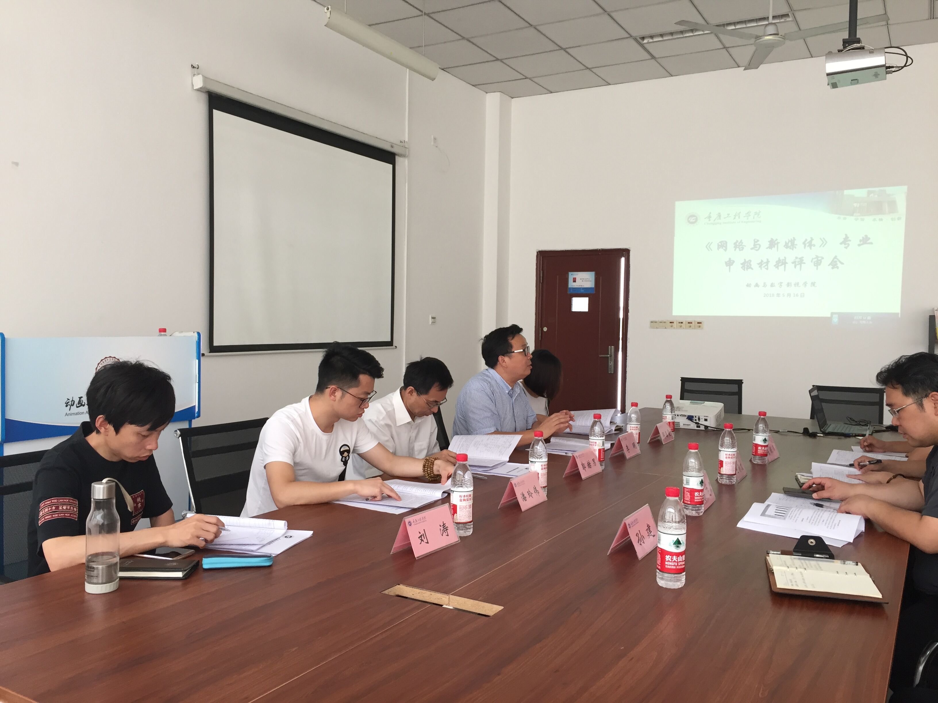 学院邀请四川外国语大学郭赫男教授、重庆邮电大学李明教授、华龙网愉生活品牌部副总监潘玲伟、学校素质教育中心副主任邹春霞副教授、学院刘涛副教授对《网络与新媒体》专业进行申报论证。