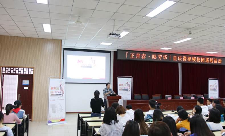 (本网讯 动画系 肖容) 2018年9月20日上午10:30,“正青春·映芳华”重庆微视频大赛校园版块巡展活动在重庆工程学院6302教室举行。重庆广电集团创新事业集团罗尹汐、马政波,西南大学新闻传媒学院副院长赵剑,西南大学新闻传媒学院社会服务中心副主任王命洪,重庆工程学院数字艺术学院杨飞副院长,全体动画系教师出席,400余名动画系学生参加此次巡展活动。此次活动由重庆工程学院数字艺术学院动画系副主任陈银伟主持。