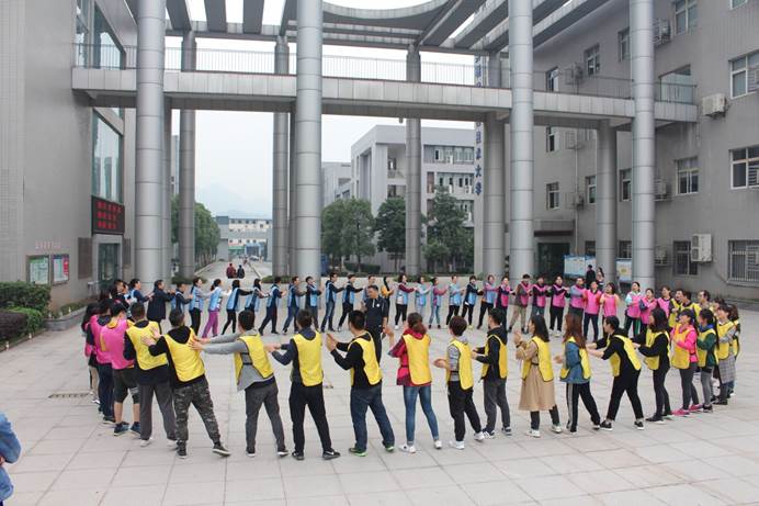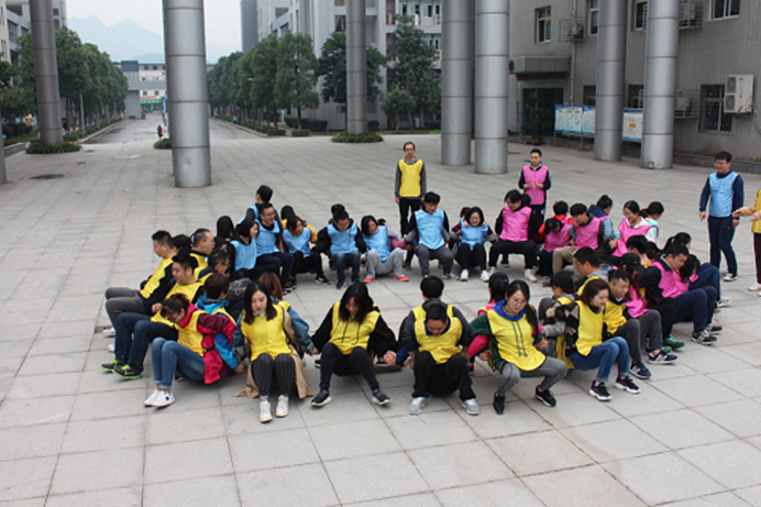 拓展活动中,全体学员分成三组,并确定各自队名和口号。在素质拓展指导老师熊力、向建等的精心指导下,通过团队成员们的团结协作,先后完成了 “坐地起身”“同心鼓”“一圈到底”“珠行万里”“急速60秒”“穿越电网”“动力圈”等一系列以激发个人潜能、熔炼团队智慧为宗旨的素质拓展训练项目。