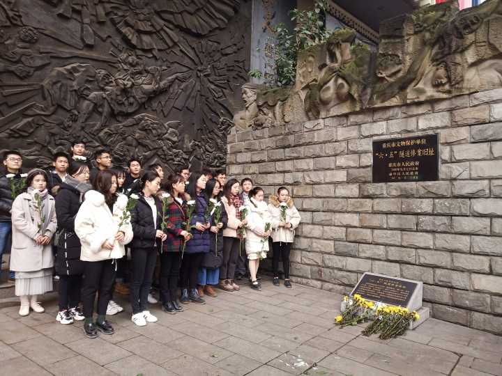 为弘扬爱国主义精神,加强爱国主义思想教育,铭记历史,珍爱和平,数字艺术学院学生党支部于2018年12月21日15点举行了“勿忘历史,激扬奋进”重庆大轰炸惨案遗址献花活动。