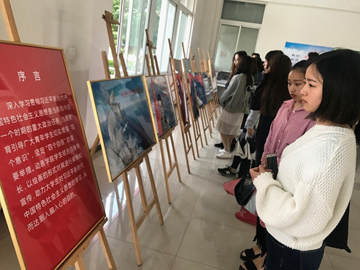 4月16日,为贯彻党的十九大精神,深入学习习近平新时代中国特色社会主义思想。我院学生党支部在第六教学楼一楼大厅开展了学习宣传贯彻习近平新时代中国特色社会主义思想活动。本次活动采取了新颖的活动形式,结合了学院专业特点,使用专业软件绘图,设计出“习近平新时代中国特色社会主义思想”的基本依据、主要内涵、新时代的新气象新作为等系列图画,向同学们描绘了近几年来中国在经济、政治、科技、军事等方面发生的重大发展和变化,让同学们看到了一个全方位、多层次、立体化的崭新的中国。