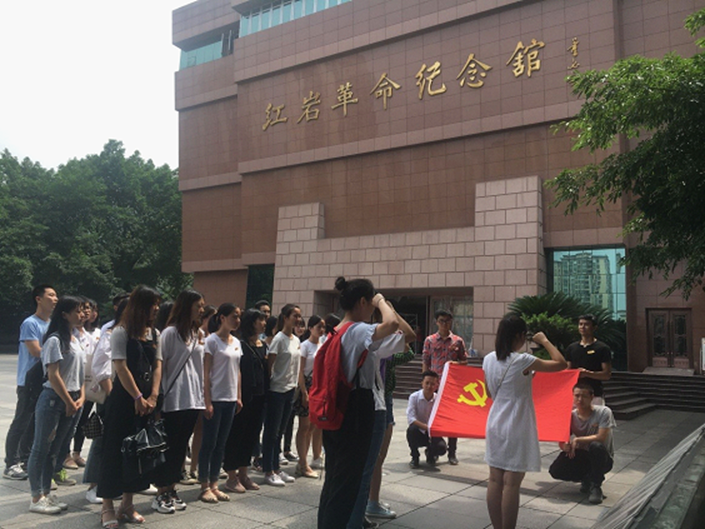 6月13日下午,我院学生党支部党员们在学生党支部书记陈遥、组织委员李尚伦的带领下集体前往红岩革命纪念馆开展“七一”主题党日活动。党员们先后参观了红岩村内的饶国模故居、大有农场、八路军办事处旧址等,通过详实的史料照片与完整的历史原物,充分感受到老一辈无产阶级革命家在艰难困难中开拓新局面的决心与信念。在纪念馆前,新党员面对党旗进行了庄严的宣誓,其他党员也重温了入党誓词。