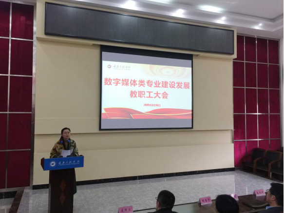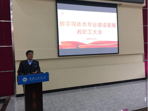 3月15日下午13:00,学校在行政楼报告厅召开数字媒体类专业建设教职工大会。会上,程昌华副校长深入阐述了数字媒体技术专业归属调整到数字艺术学院的背景和意义。王琼花副校长宣读了《重庆工程学院关于数字媒体类专业归属调整的通知》、《重庆工程学院关于调整部分二级学院(教研室)的通知》文件。