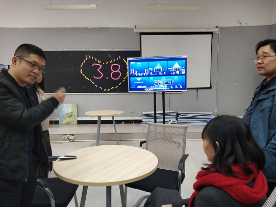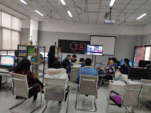 最后,重庆工程学院的客座教授赵伶俐、教务处李静处长、数字艺术学院庄涛文副院长、数字艺术学院杨飞副院长来数字媒体系参观指导工作,并给与了数字媒体系游戏设计方向的毕业设计作品、特色班游戏作品、大三实训班作品给与了高度的评价,给与数字媒体系的全体教师充分的肯定!