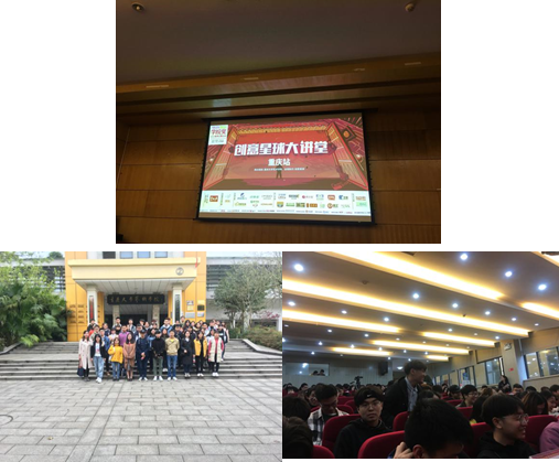 (本网讯 数字艺术学院设计系 杨明慧)2019年3月22日13:30—17:00,由数字艺术学院杨明慧、肖容老师带队,我院数字媒体艺术专业学生共计50人参加了虎溪重庆大学艺术学院报告厅举办的大广节学院奖2019春季征集活动全国高校巡讲·创意星球大讲堂活动。