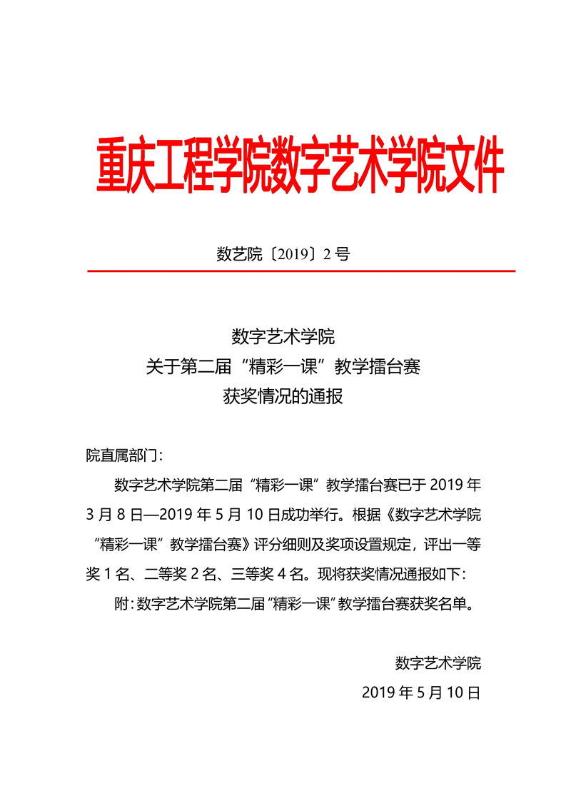 数字艺术学院 关于第二届“精彩一课”教学擂台赛 获奖情况的通报