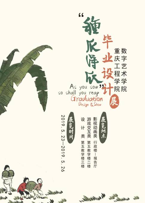 “种瓜得瓜”是2019届毕业设计作品展主题。预示着数艺学子学有所成,即将走出校门,用所学本领服务社会。