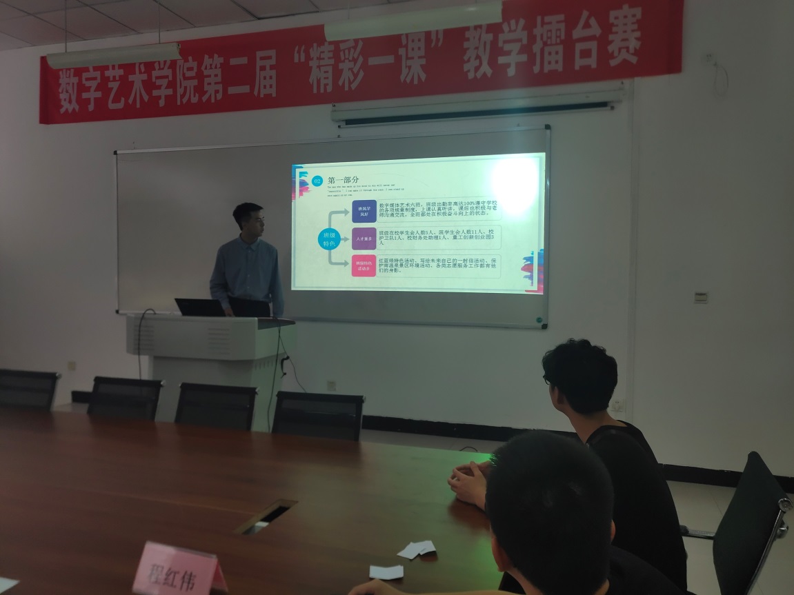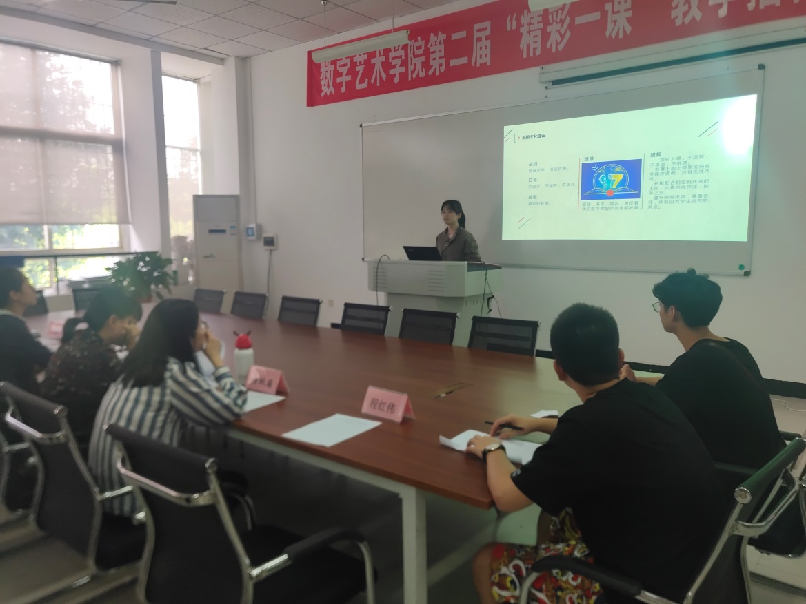 为了进一步促进班级文化建设,打造“班风正、学风浓、素质高、凝聚力强”的班集体,让学生努力地学习, 健康快乐地成长。数字艺术学院于2019年5月22日14:00,在5207会议室开展了“红蓝绿”班级文化建设评比活动。出席本次活动的有学生工作室主任周静、辅导员杨秋菊、闾鹏老师和各参赛班级代表。