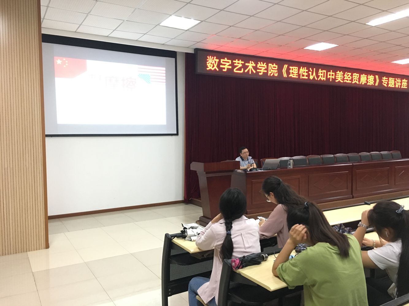为进一步让同学们正确把握国际形势的发展趋势,提升科学判断国际形势的能力,提高政治站位意识。2019年6月12日(星期三)19:00,数字艺术学院邀请到重庆交通大学马克思主义学院党总支书记吴成国教授做客重工讲坛,在6302开展了《理性认知中美贸易摩擦》专题讲座。
