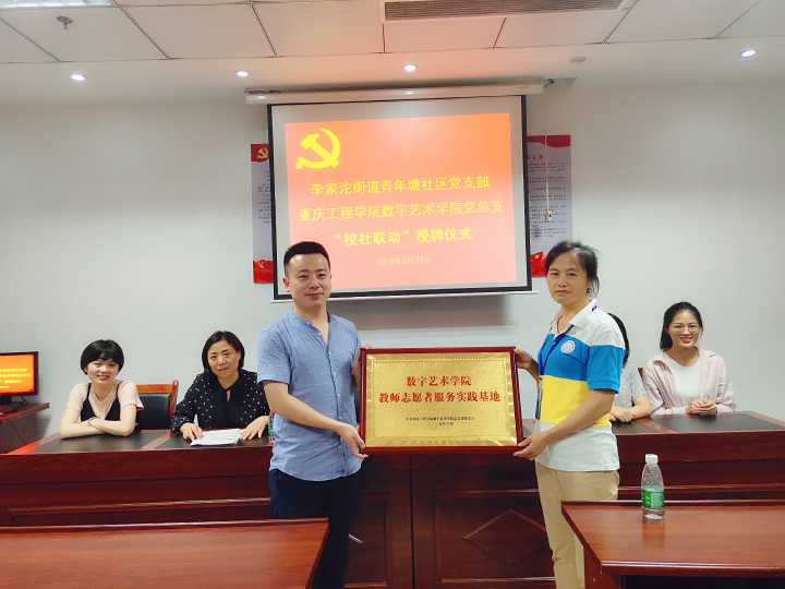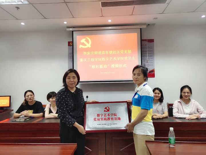 2019年6月13日,数字艺术学院党总支书记徐小辉携学生党支部书记张付玲、张雪银,组织委员陈遥,教师党员代表孙建及部分学生党员同志,前往巴南区李家沱街道青年塘社区举行了“校社联动”授牌仪式。