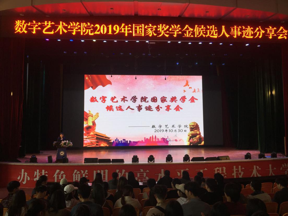 2019年10月30日下午13点,重庆工程学院数字艺术学院在学术报告厅举办了“国家奖学金候选人事迹分享会”,国家奖学金候选人代表李西娅、何星倩同学上台发言。