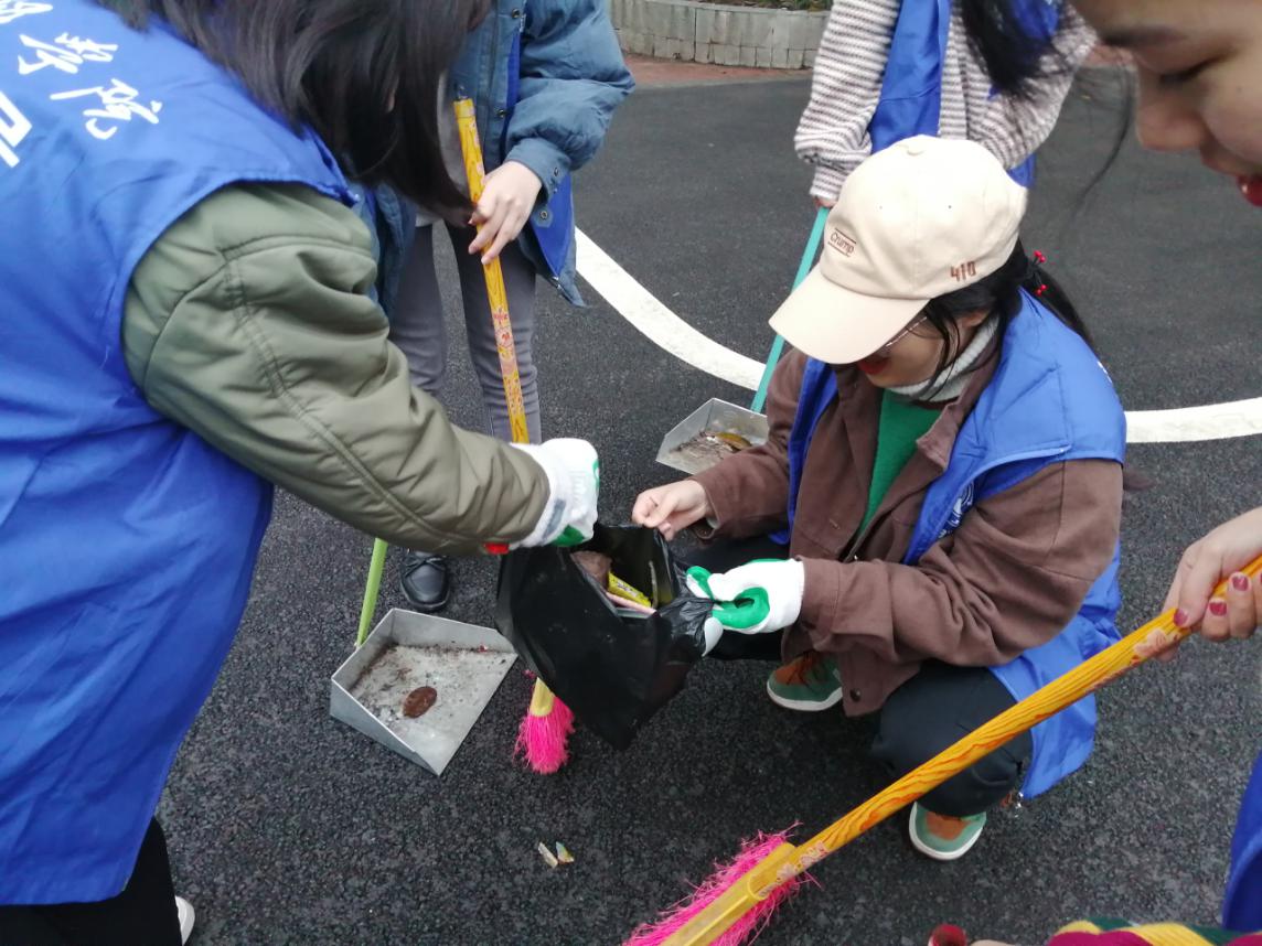 为了达到较好的活动效果,数字艺术学院青年志愿者协会工作人员提前到达足球场进行签到与活动准备工作。参与人员准时到达后,工作人员按照五人一组的标准进行分组,下发手套、扫把、垃圾袋等打扫工具。活动开始前,由学院党总支书记徐小辉发言,徐书记对此次活动的目的进行了说明,并希望全院学生将“5个1”坚持贯彻下去。活动开始后,徐书记带领着辅导员老师、班委、青协成员、团委学生会成员在容园4号、和园1号、和园2号周边进行了清洁打扫。身穿蓝色工作服的同学们穿梭在校园里,构成一道美丽的风景线。