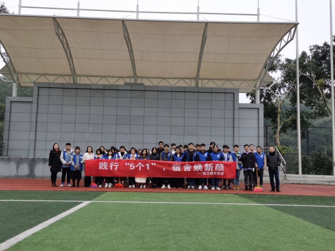为响应学校“5个1”寝室文化建设活动,数字艺术学院青年志愿者协会于2019年11月27日16:30在容园4号、和园1号、和园2号、足球场开展了践行“5个1”,宿舍换新颜活动。