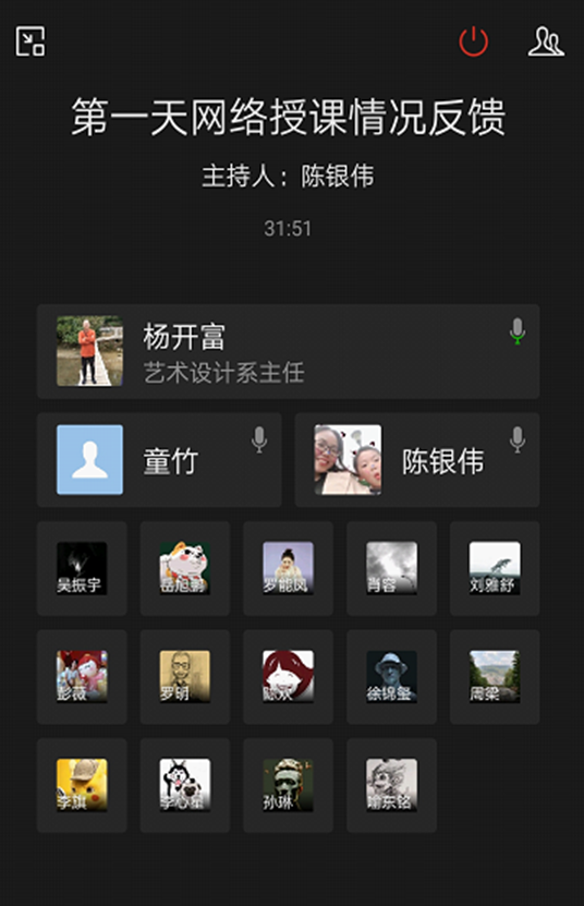 首先,陈银伟副主任总结了第一天网络授课的大致情况,整体运行良好,超星平台的拥堵问题也能通过其它优化方式解决。其次,周一上课老师根据第一天教学运行情况,各自分享了教学经验和平台使用技巧。最后,数字媒体艺术学院院长杨开富教授对动画系第一天的授课情况进行了高度赞扬。他鼓励老师们进一步熟悉教学平台功能,丰富教学方法和教学资料,高标准组织好网络办公和网络教学的各项活动。