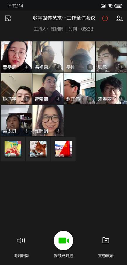 (本网讯 数字艺术学院数字媒体艺术系 曹岳辰)2020年2月19日下午,重庆工程学院数字艺术学院系部,于企业微信召开了期初教学视频会议。本次会议由数字媒体艺术系主任陈娟娟老师主持。