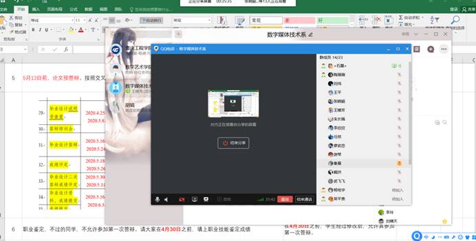 (本网讯 数字艺术学院技术系 陶薇薇)5月8日下午17:00,学院技术系通过QQ直播形式召开了系部会议,对毕业生论文预答辩以及近期工作进行了安排布置,并针对毕业生条件进行简述,提醒指导教师督促学生提交相应材料。本次会议由系主任石磊支持,系全体教师参加了此次会议。