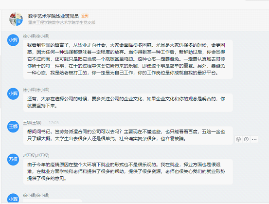 为进一步强化毕业生党员党性观念和宗旨意识,激励他们树立崇高理想和坚定信念,激发广大党员同志创先争优的热情,2020年6月7日16:00,数字艺术学院学生党支部开展了毕业生党员专题教育组织生活会,本次活动由党总支书记徐小辉同志主持,学生支部书记和组织委员、毕业生党员及预备党员参加。