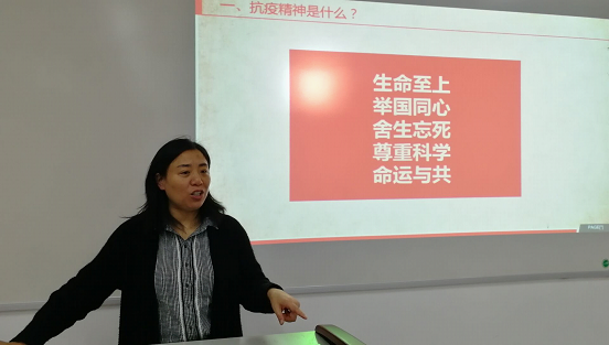 讲课中,徐书记与教师党员们一起,从“抗疫精神是什么?”、“为什么要强调初心和使命?”、“如何才能永葆初心和勇担使命?”三个方面,共同学习了抗疫精神的内涵,分析了党和国家能够迅速有效控制疫情的原因,并从广大党员干部在此次抗疫斗争中的突出表现和核心作用,联系到教师党员们自己,引导大家深入思考如何在岗位上弘扬抗疫精神,坚守初心使命,做好教书育人工作。