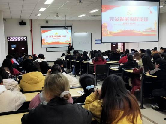 张雪银老师从“控制总量,优化结构,提高质量,发挥作用”的发展党员总要求进行开讲,强调了从严治党,严于律己的纪律,引导同志们不忘初心端正入党动机,并系统地介绍发展党员的基本程序和常见问题。接着讲述了从申请人到积极分子的八项主要工作积极分子到发展对象的七项主要工作,发展对象到预备党员的五项主要工作,预备党员到正式党员的九项主要工作。在发展过程中一切按照党的规章制度实行,并提出了主要材料书写要求和注意事项,材料要求真实、全面、准确、规范,书写必须用黑色签字笔。最后,徐书记嘱咐同志们务必严格遵守党员发展流程规定。