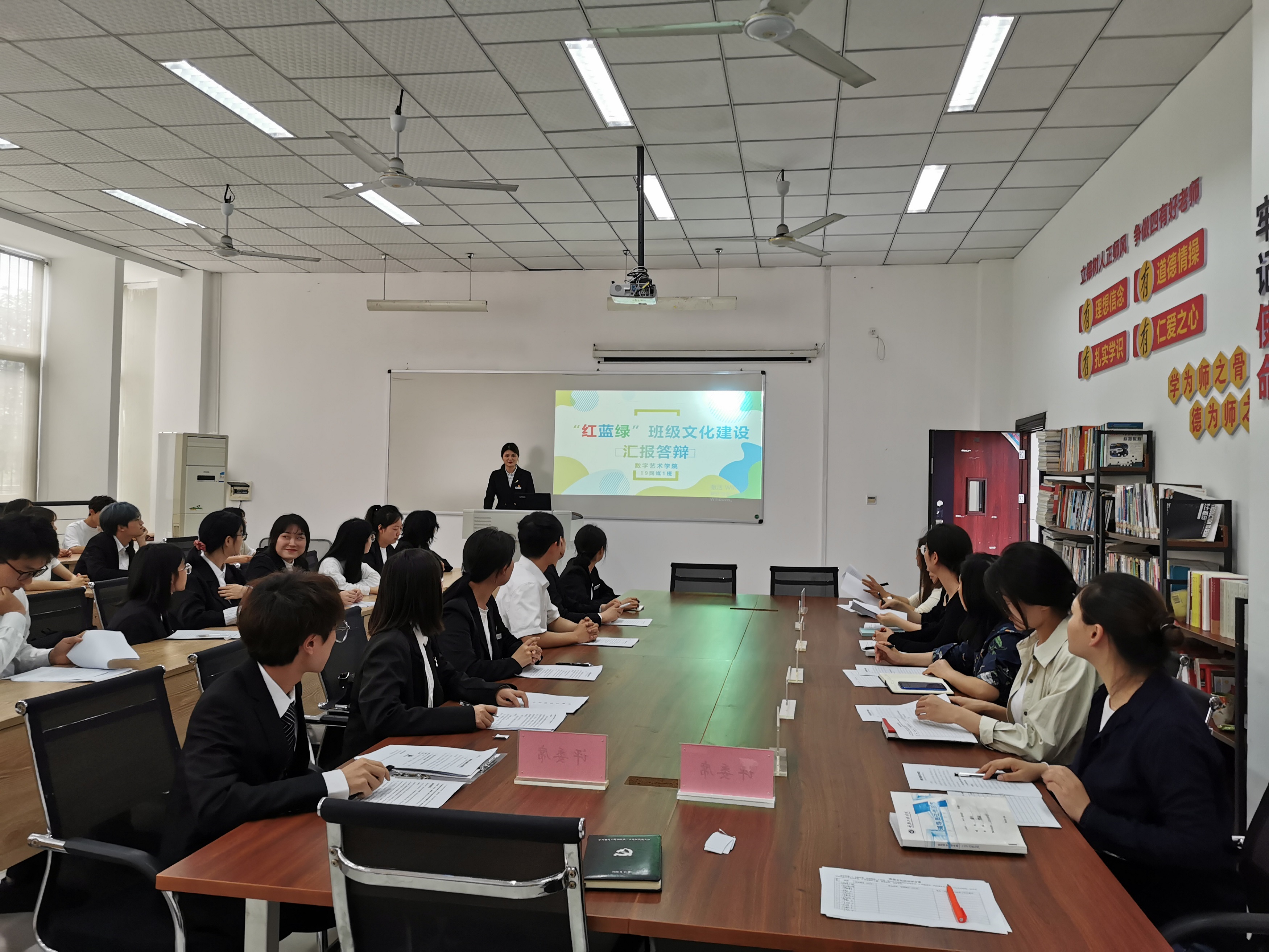 首先古老师讲解了此次评审答辩的规则和流程,其次进行答辩环节,班级答辩代表把各个班级的“红蓝绿”班级文化建设情况一一汇报。答辩内容基本上分为三块:一活动开展情况及活动特色,二存在的问题,三未来的改进目标。最后徐书记做出总结,强调利用本次活动平台,大家“相互学习、相互借鉴”,在班级文化活动建设过程中,多与辅导员、班导师交流建设思路,并有针对性的对大家提出了要求,呼吁各个班级都要砥砺前行,各个班委起模范作用,在实践中践行,改进方向,为更好的班级建设奠定良好基础。