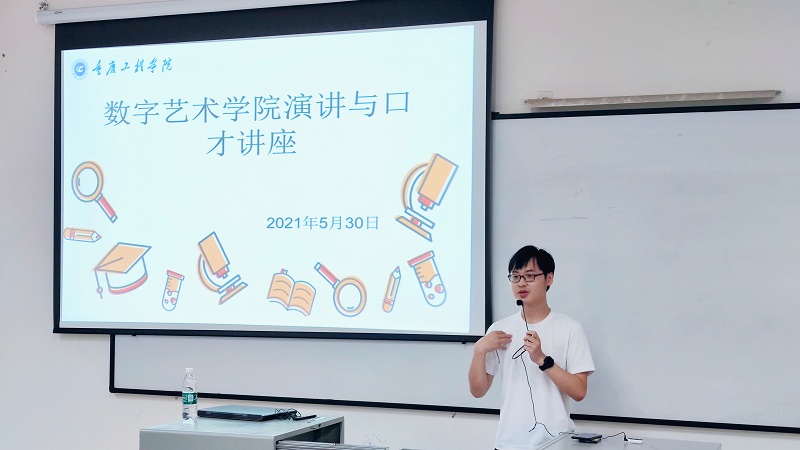 为做好本学期晨课期末考核工作,增强我院同学们的即兴演讲能力,2021年 5月30日17:00在第六教学楼203教室开展了即兴演讲技巧讲座。讲座特邀请重庆泊乐文化的职业讲座主持人李振源老师,辅导员覃薇老师和19级晨课助教等百余名同学参加。