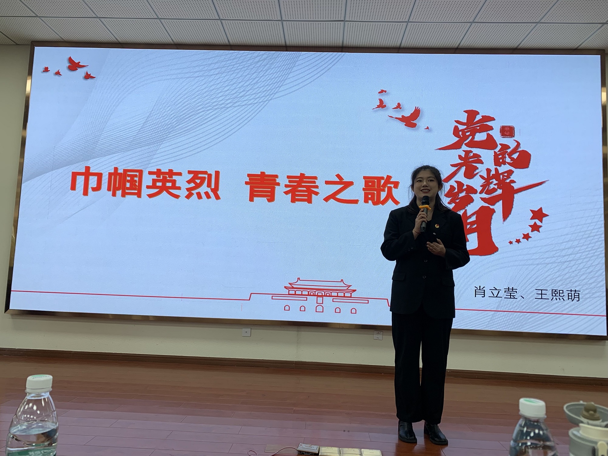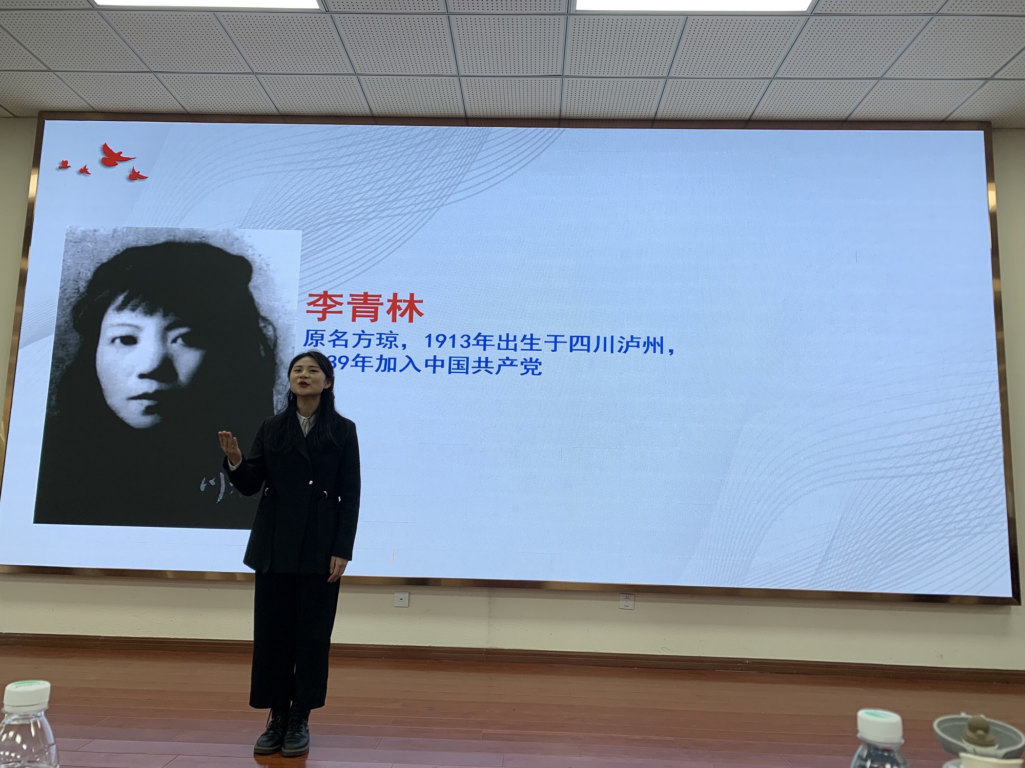 肖立莹和王熙萌两位同志一起带来作品《巾帼英烈,青春之歌》-李青林的故事。在那个艰难的年代,李青林同志时时以“不愿久偷生,但愿轰烈死,愿将一己命,救彼众苍生”诗句励志,她以巾帼不让须眉之势撑起了“半边天”,彰显了革命年代女性独特的魅力,为祖国的发展注入了强大活力。她们激情澎湃的分享让现场观众真切感受到女性的力量、领悟到红色精神的深刻内涵。据悉,参加本次决赛的共有13支团队,经过激烈角逐,肖立莹和王熙萌团队以第二名的成绩荣获二等奖。