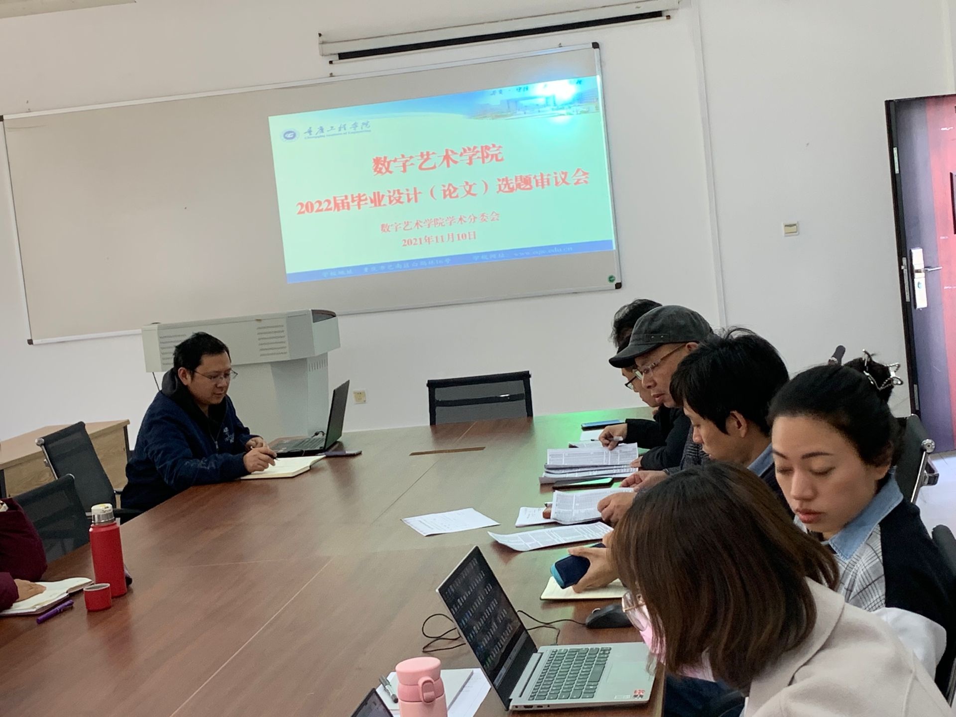 2021年11月10日中午,数字艺术学院学术分委会召开了关于2022届毕业设计(论文)选题的审议会。学术分委会组长杨开富,副组长刘涛,成员弋玮玮、张小玲、陈娟娟、彭赟、庄涛文、杨飞、杨明慧,秘书赵正伟参加了会议,会议由院长杨开富主持。